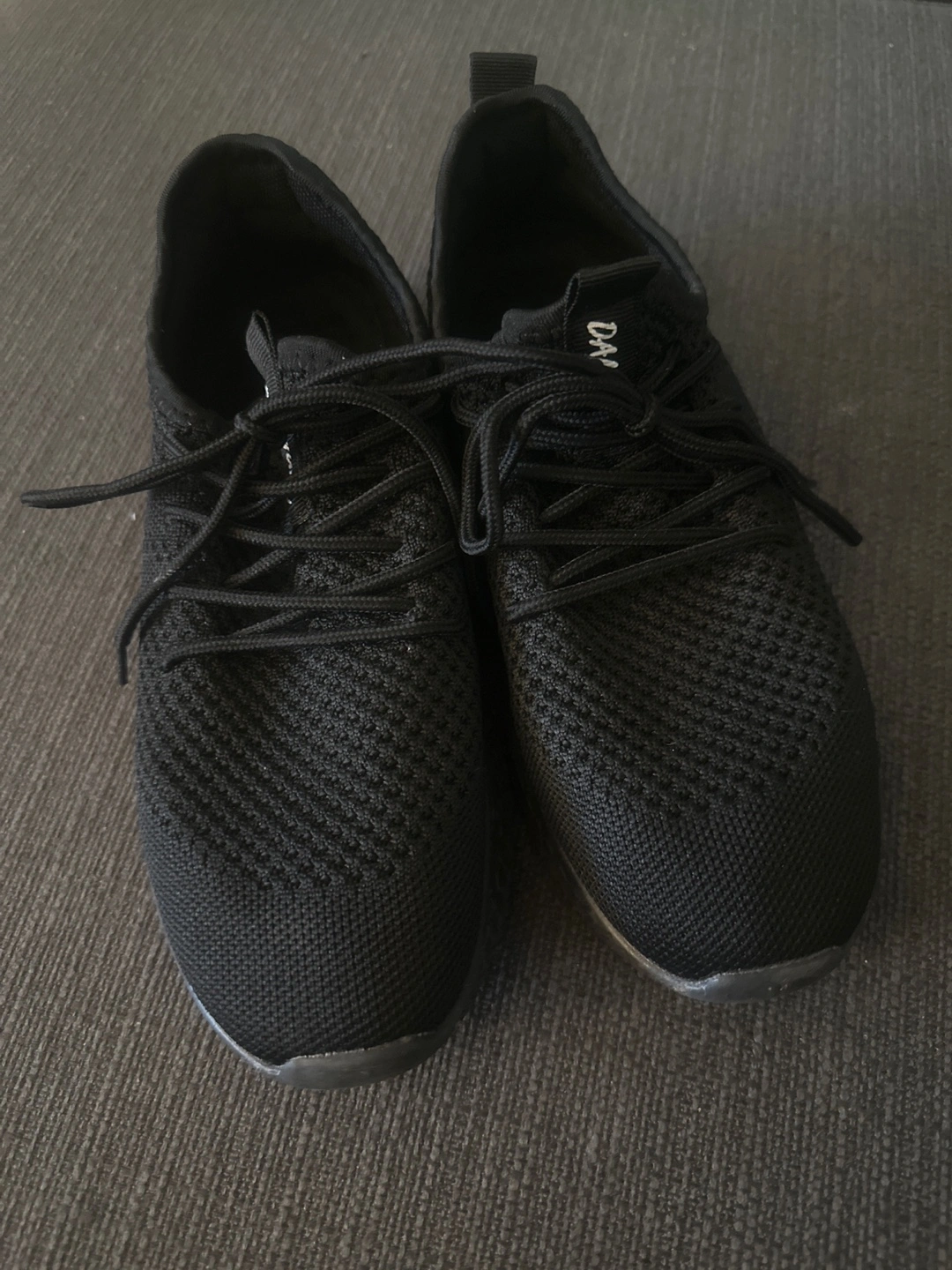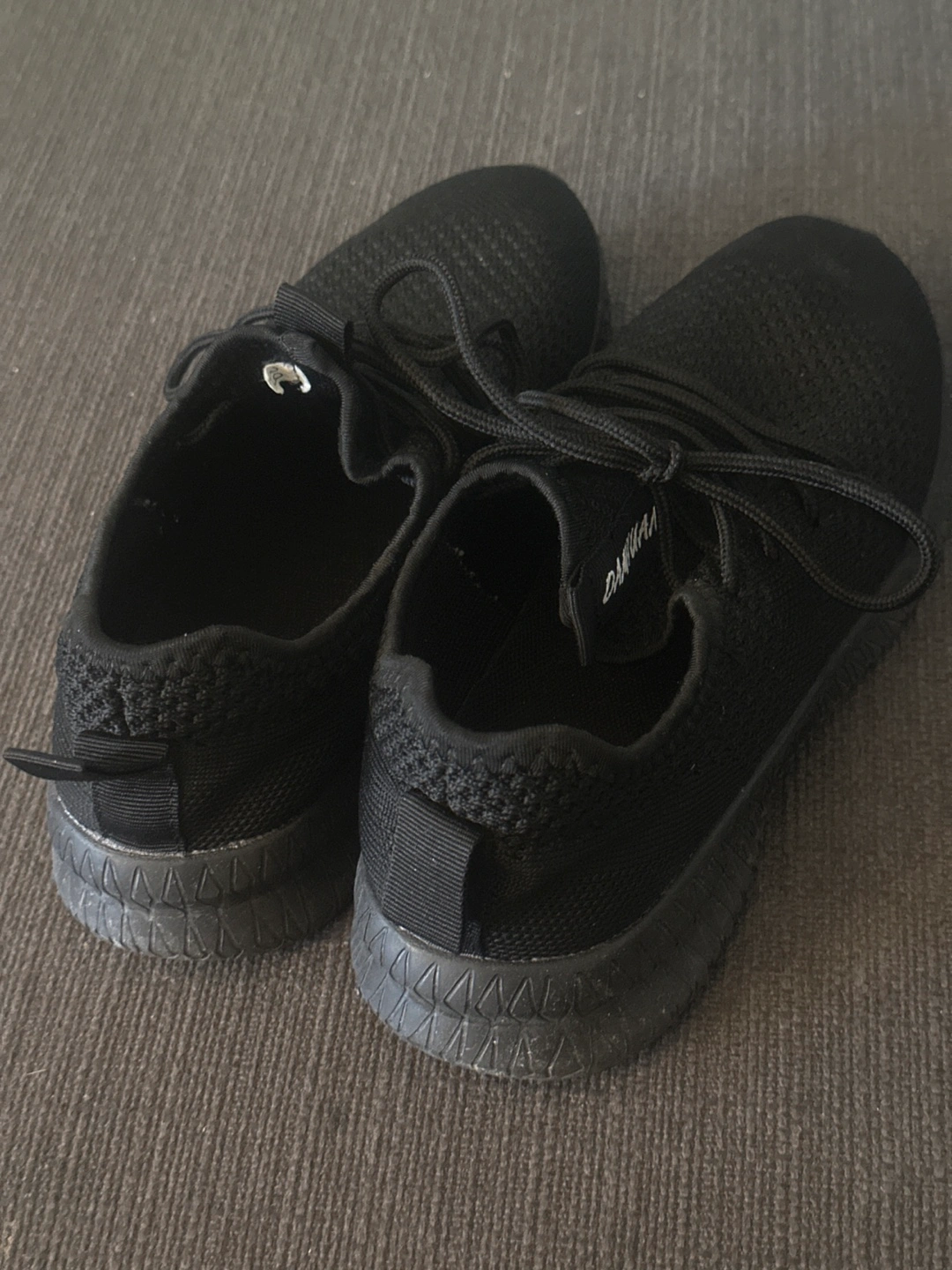 283Pair of black women's sneakers. Knit upper, lace-up closure. Lightweight and comfortable. Size 39