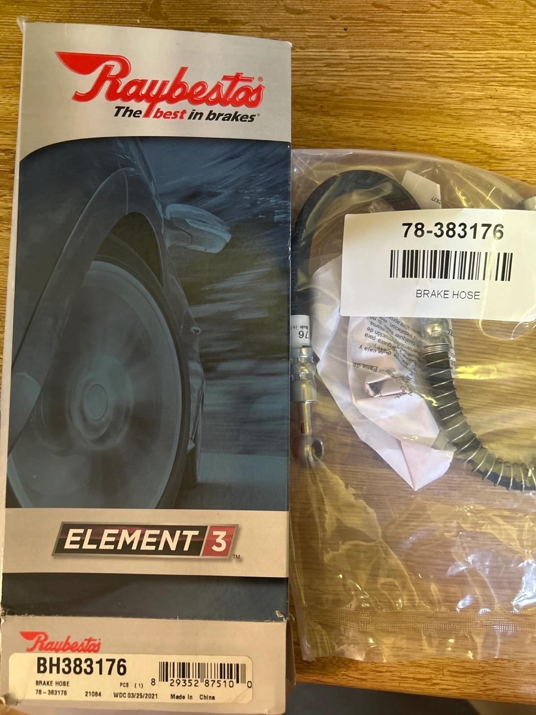 89New Raybestos brake hose. Part number BH383176 (lordco auto parts), manufacturer number is 78-383176. Element 3.