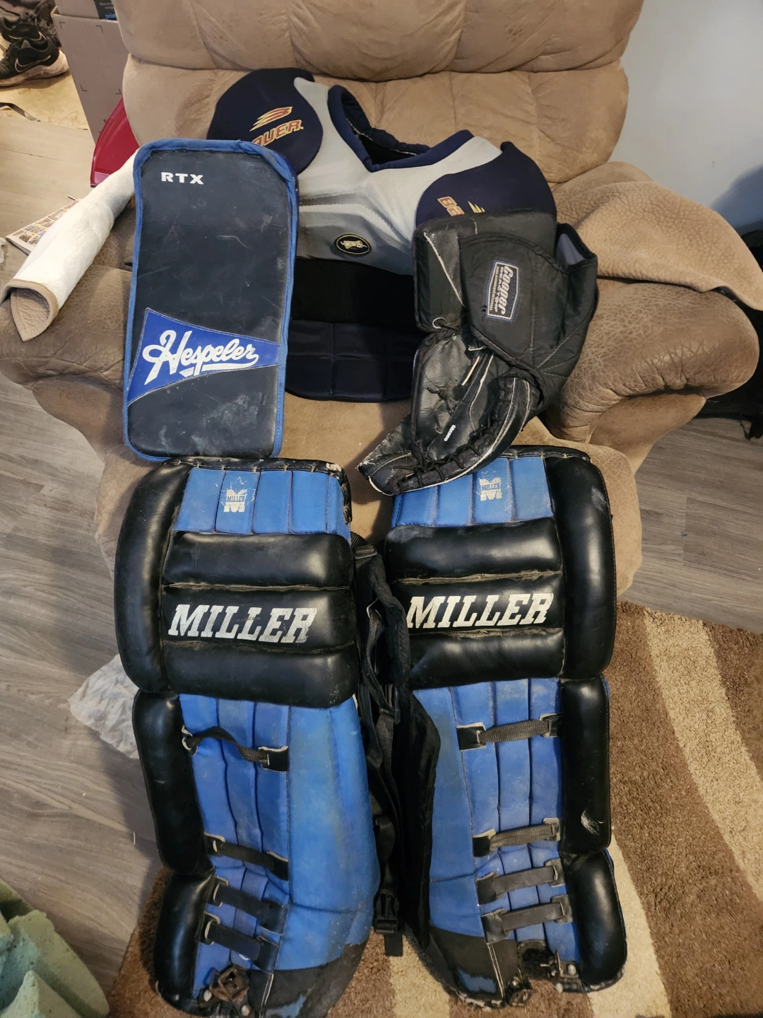 Buy & SellVintage Miller Hockey Goalie Equipment SetVintage Miller Hockey Goalie Equipment Set$70Easton chest protector hespeler glove cooper blocker Miller pads. 1 blue set and 1 orange set sam sizeConditionGoodWHERE TO MEETCheck LocationView MapSELLERverifiedChrisAldergrove1083 reviews1 chats·0 favorites·25 views