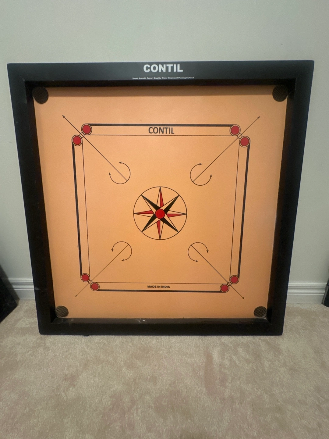 Buy & SellCONTIL Carrom Board GameCONTIL Carrom Board Game$45Carrom board game. Made in India. Super smooth expert quality. Wooden frame. Features red markings.ConditionNewWHERE TO MEETCheck LocationView MapSELLERFaizaMarkham E173 reviews3 chats·1 favorites·35 views