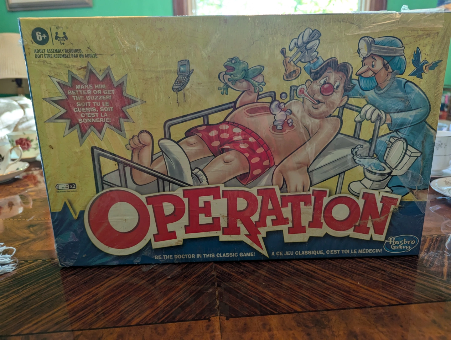 Classic Operation game. Adult assembly required. Includes buzzer. never opened. still sealed in plastic.