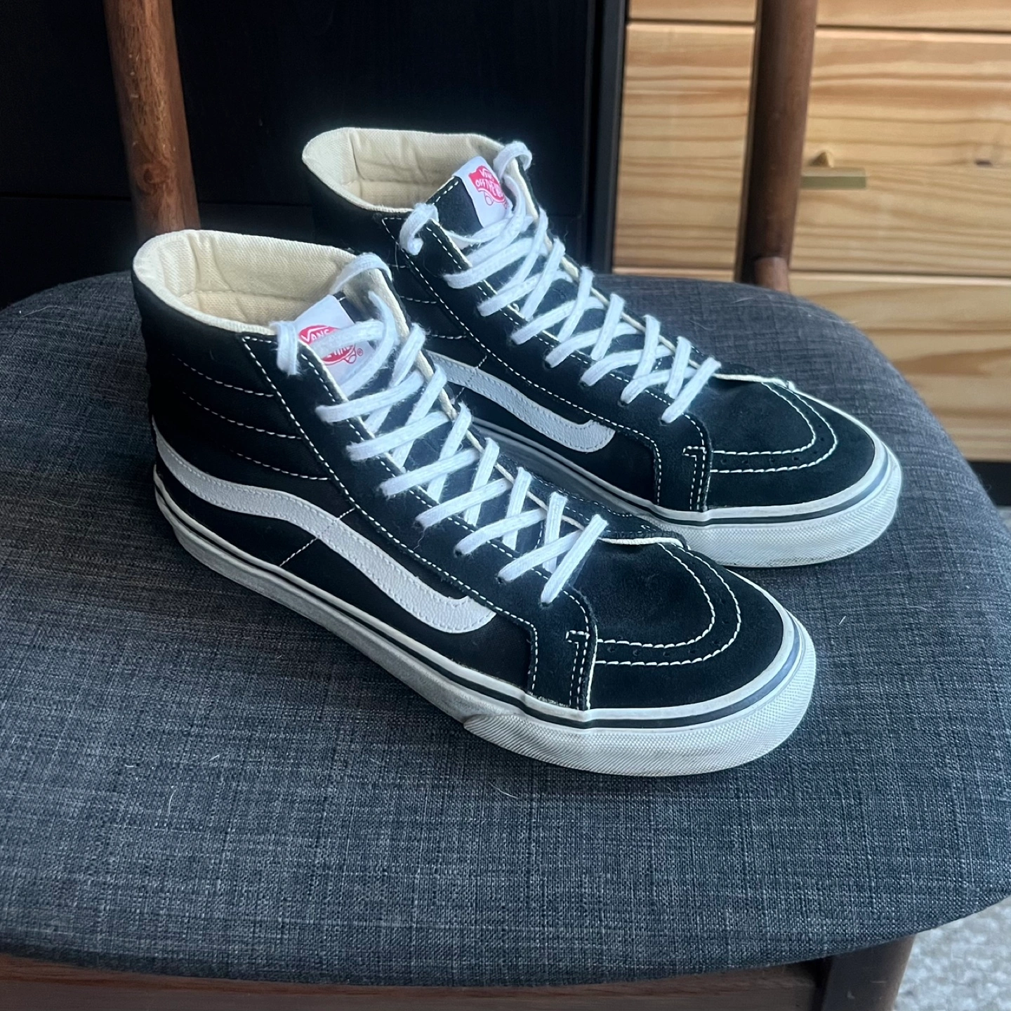 Buy & SellVans Sk8-Hi High Top Sneakers - BlackVans Sk8-Hi High Top Sneakers - Black$30Pair of black Vans Sk8-Hi high top sneakers. White laces and white stripe detail. Classic design. Excellent condition. *pickup and cash onlyConditionLike newSize8BrandVansWHERE TO MEETAce HotelView MapSELLERverifiedPaulaWaterfront Communities994 reviews2 chats·5 favorites·67 viewsSEND CHAT TO SELLERHi Paula! I’m interested in your listing.Hi Paula! I’m interested in your listing.Get the Karrot app to chatSign In to chat
