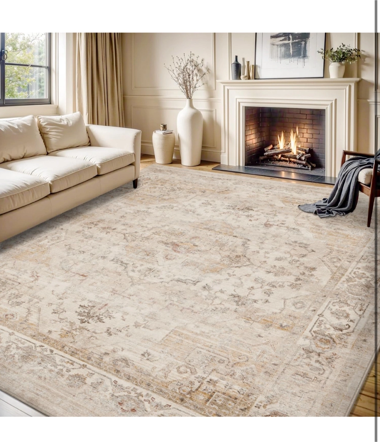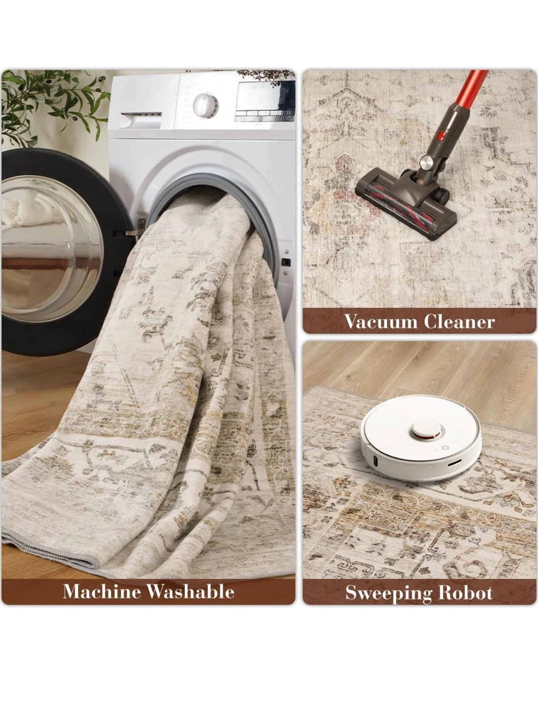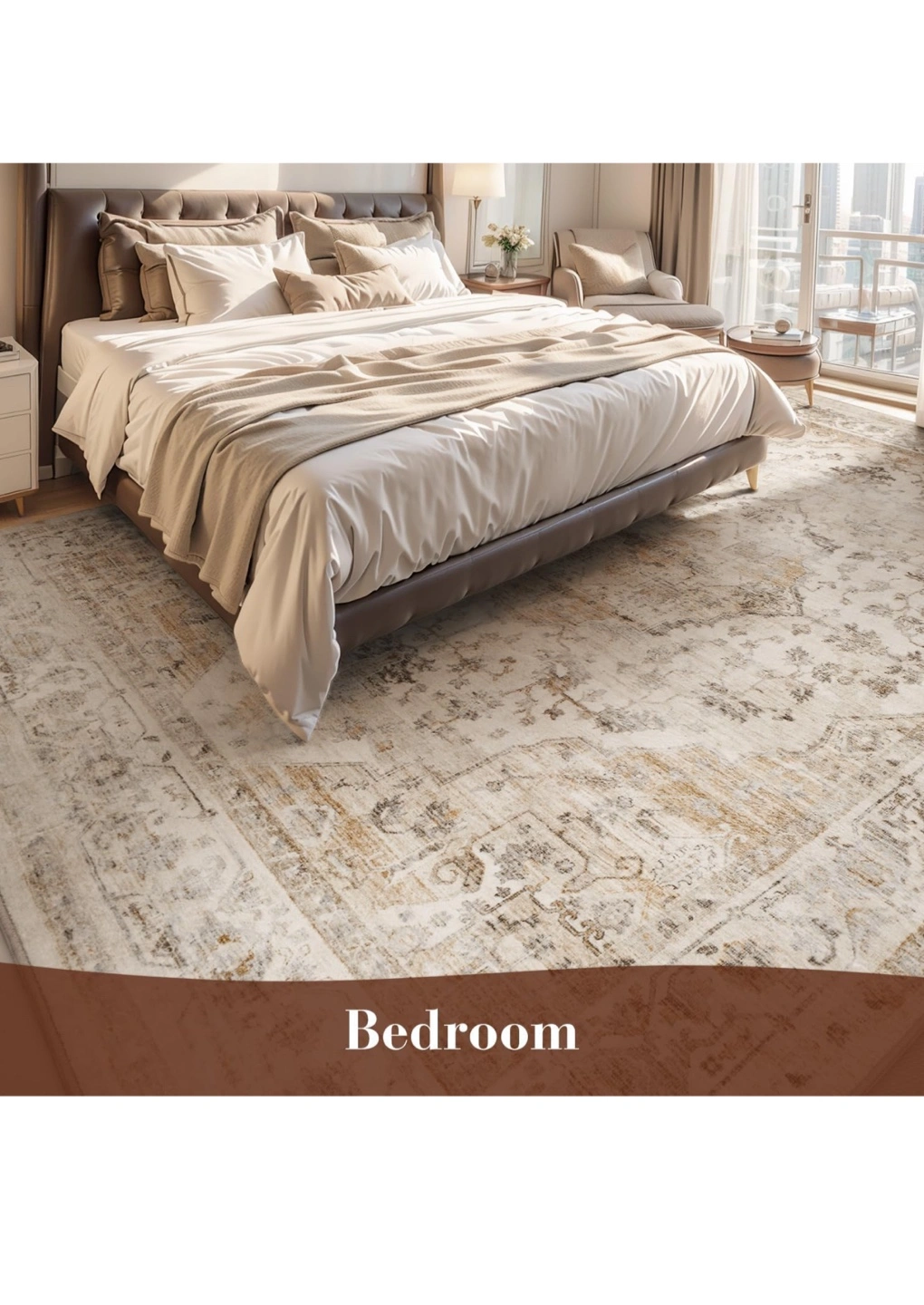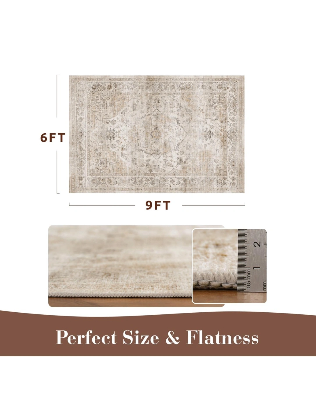 6X9 Beige Area Rug, Machine Washable, Non-Shedding
