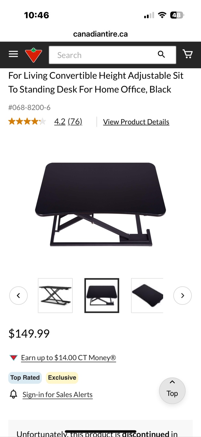 1 / 61 / 6Buy & SellAdjustable Height Standing Desk ConverterAdjustable Height Standing Desk Converter$85Black stand-up desk converter. Height adjustable. Features a spacious work surface. Ideal for laptops and accessories. Easy to use.WHERE TO MEET11 Brunel courtView MapSELLERverifiedAdinaDowntown Toronto87081 reviews0 chats·3 favorites·68 viewsSEND CHAT TO SELLERHi Adina! I’m interested in your listing.Hi Adina! I’m interested in your listing.Get the Karrot app to chatSign In to chat