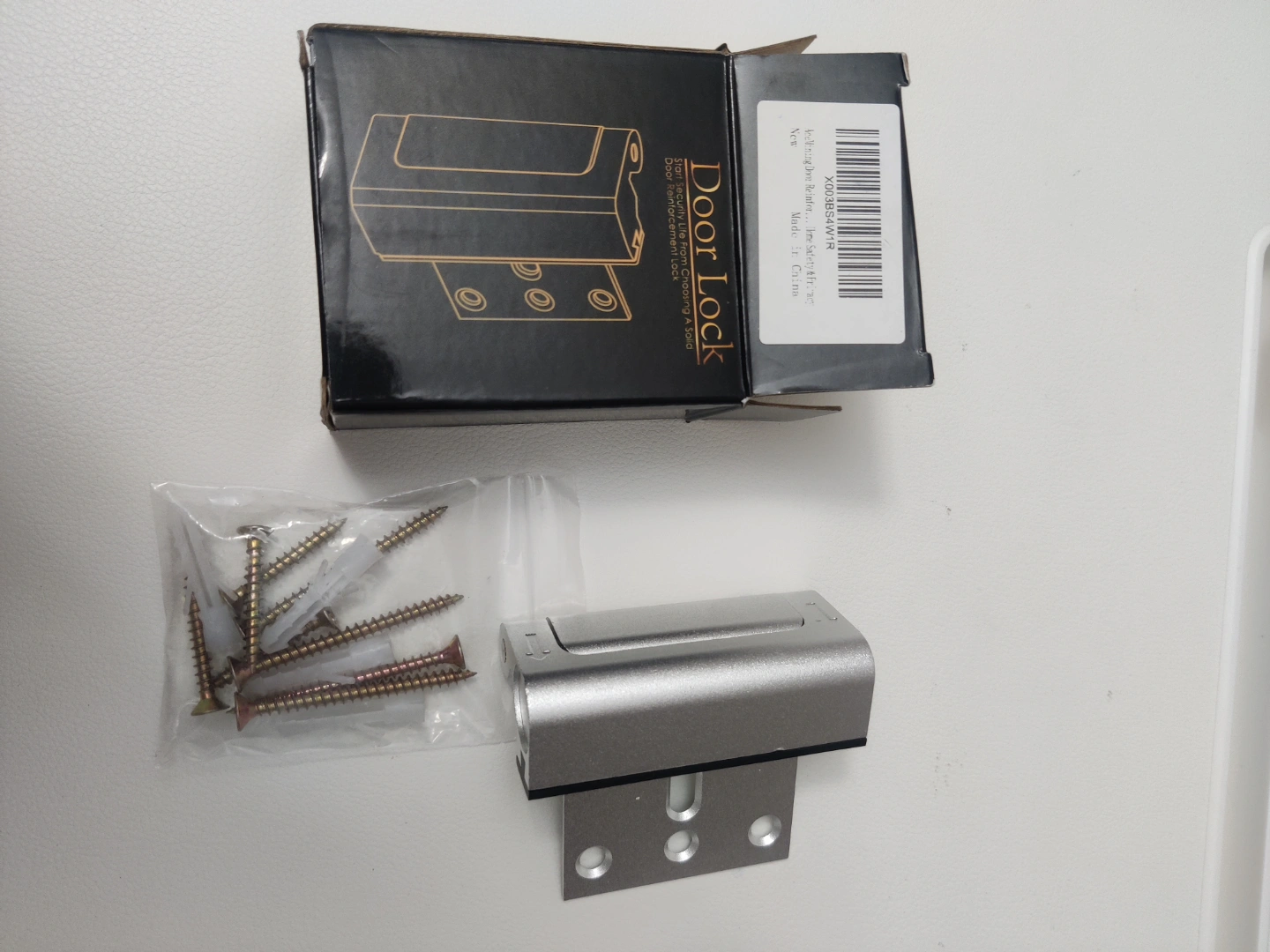 New Silver aluminum door lock. Easy installation, requires electric drill. Includes screws. Compact and secure. cash, pickup only. #ThriftyPicks πŸ’ Amazon link - https://a.co/d/2Z9jQQO
