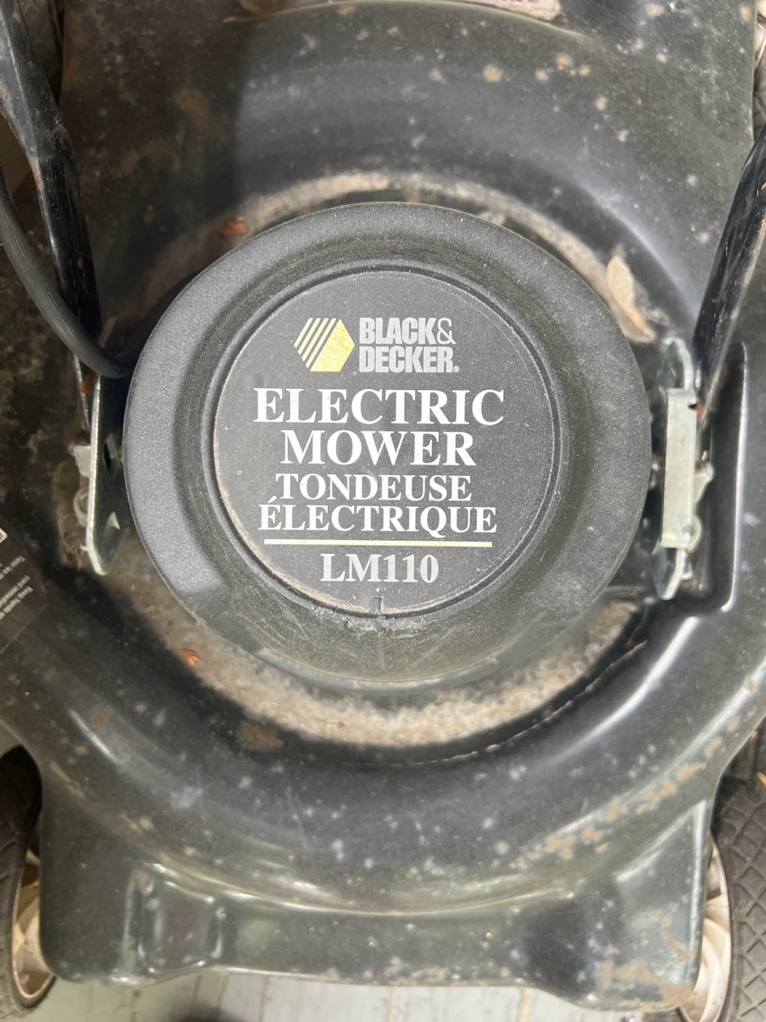 Buy & SellBlack & Decker LM110 Electric Lawn MowerBlack & Decker LM110 Electric Lawn Mower$25Black & Decker electric lawnmower. Model LM110. 120 Volt, 60 Hz. Includes power cord. Used condition.WHERE TO MEETCheck LocationView MapSELLERWeiOld Ottawa S50 reviews1 chats·0 favorites·16 viewsSEND CHAT TO SELLERHi Wei! I’m interested in your listing.Hi Wei! I’m interested in your listing.Get the Karrot app to chatSign In to chat