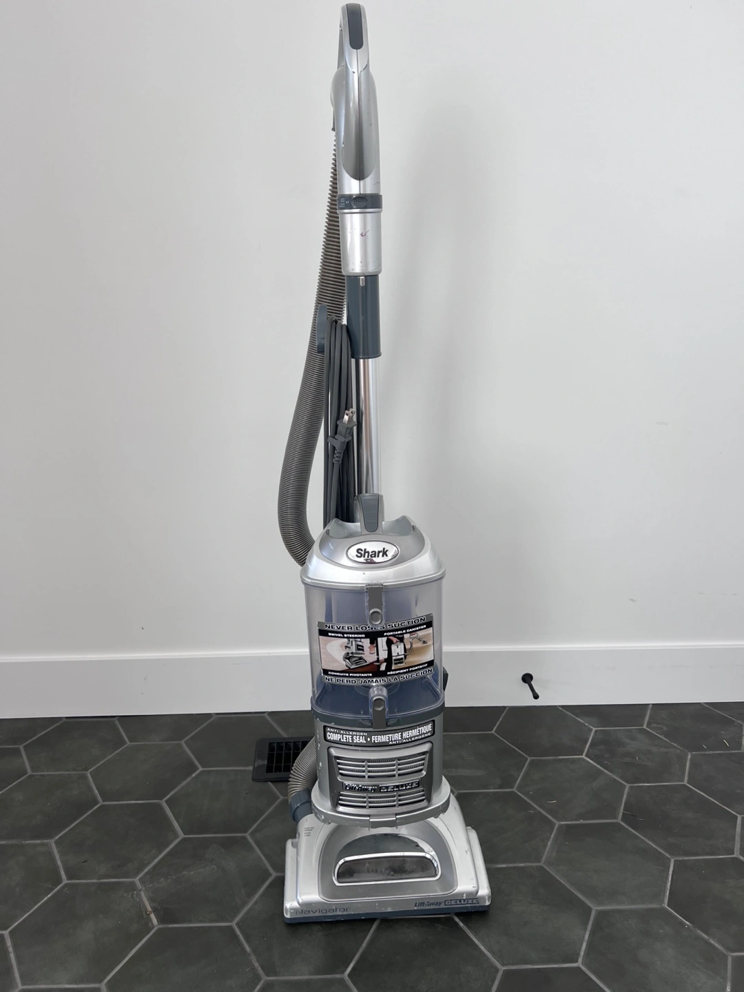 Used Shark Rotator Lift-Away upright vacuum. Includes various attachments. Good condition.
