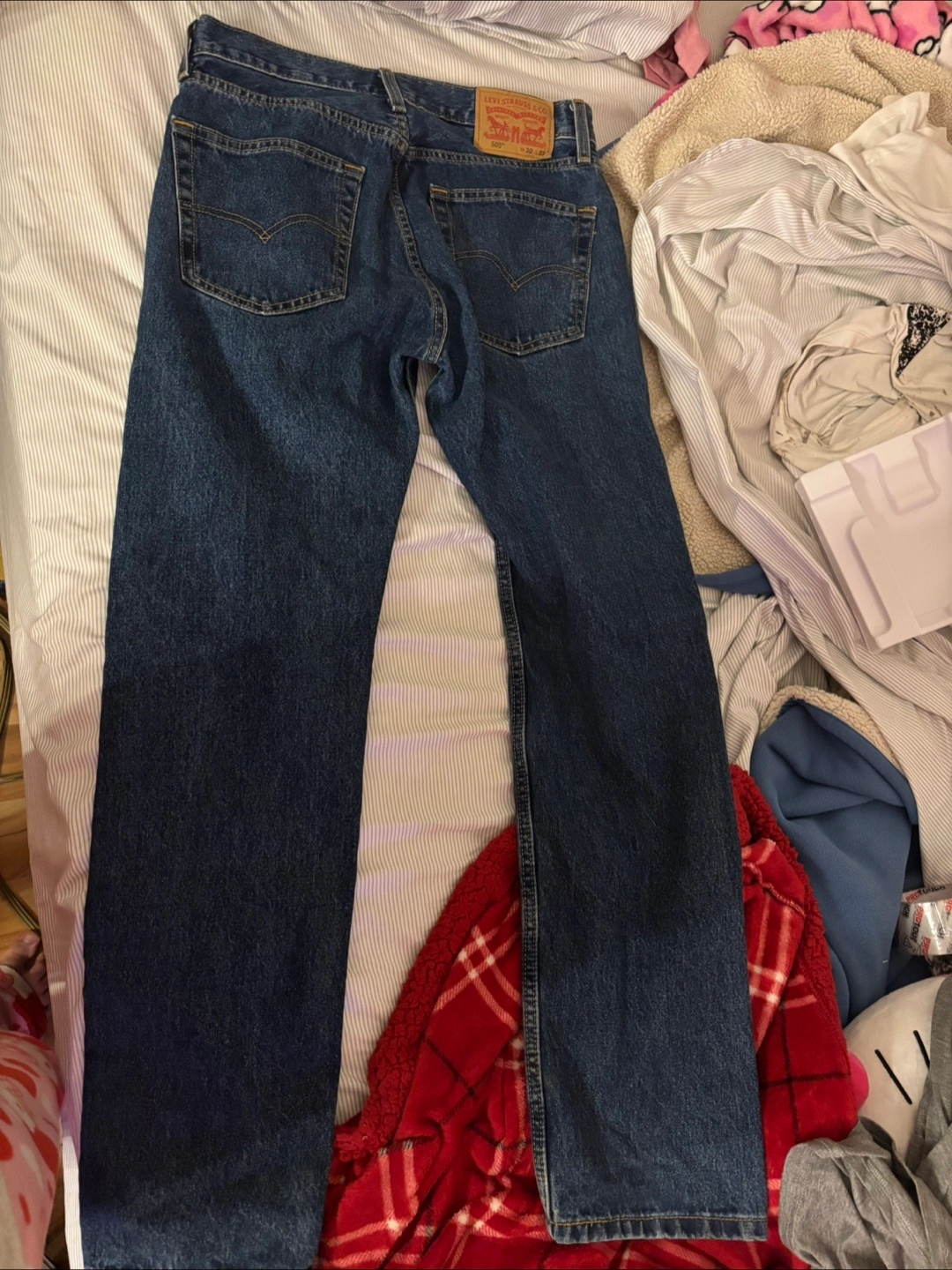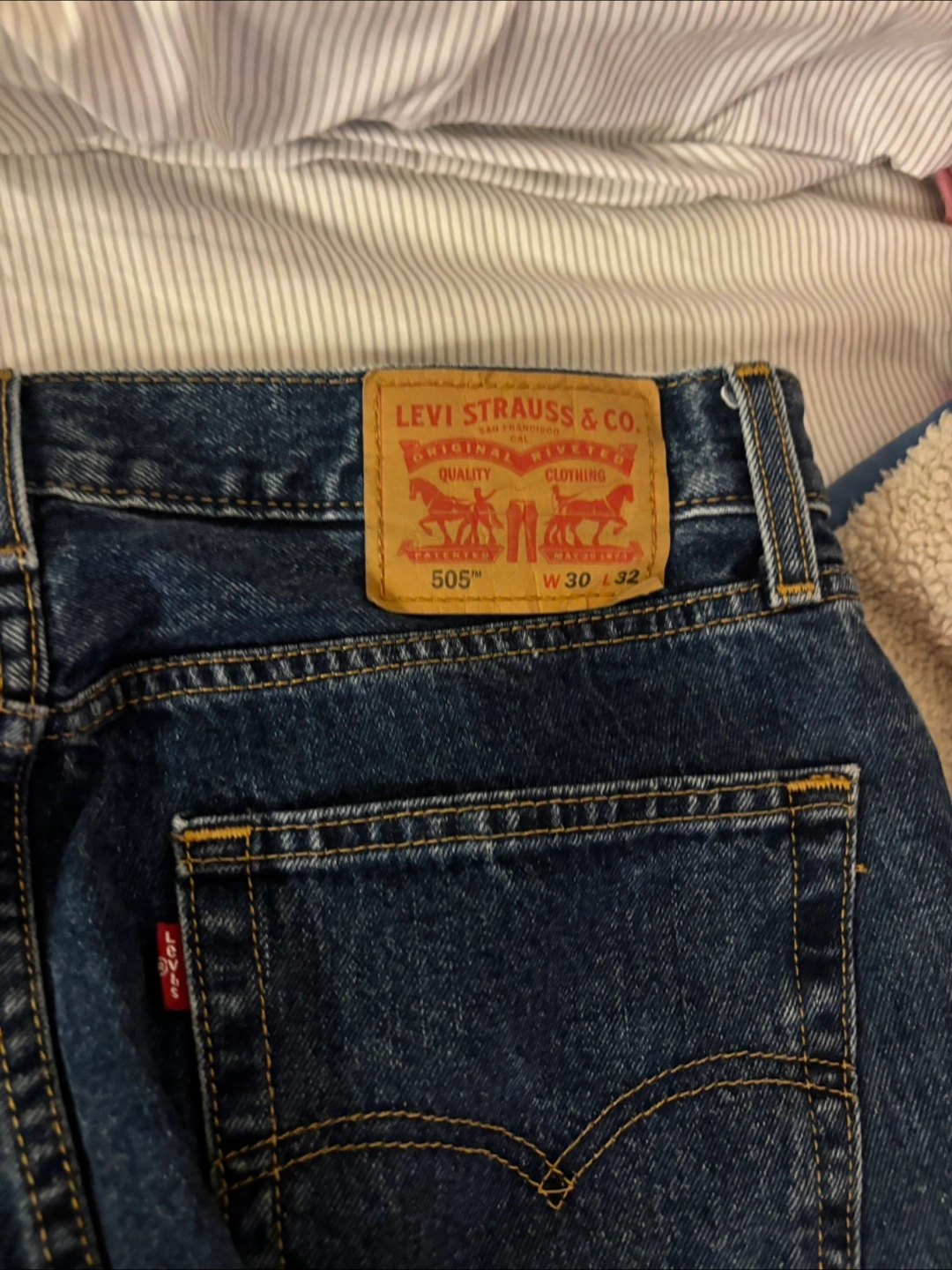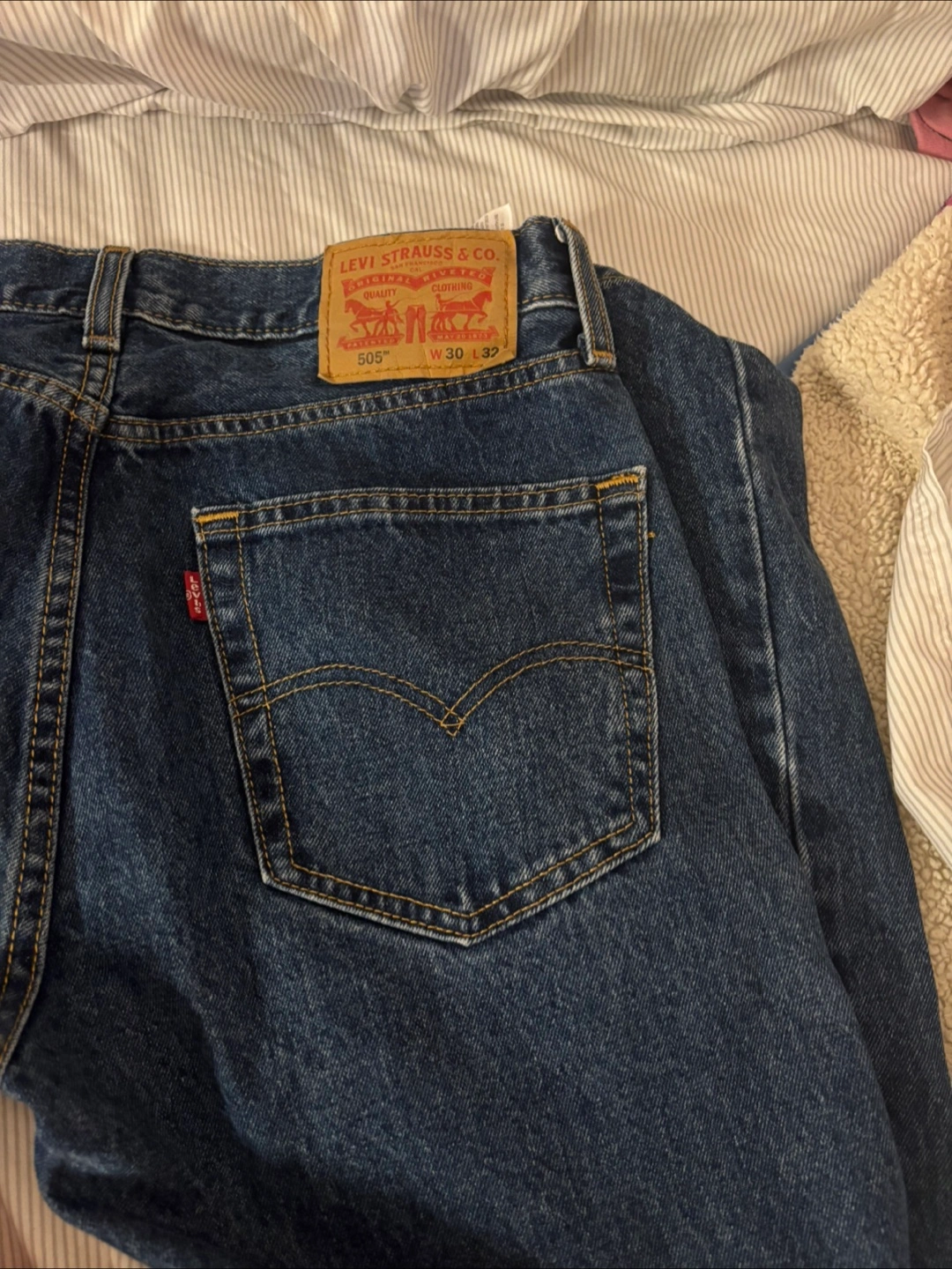 Womens Levi's 505 jeans. Dark wash denim. Regular fit. Size W30 L32. Classic style.