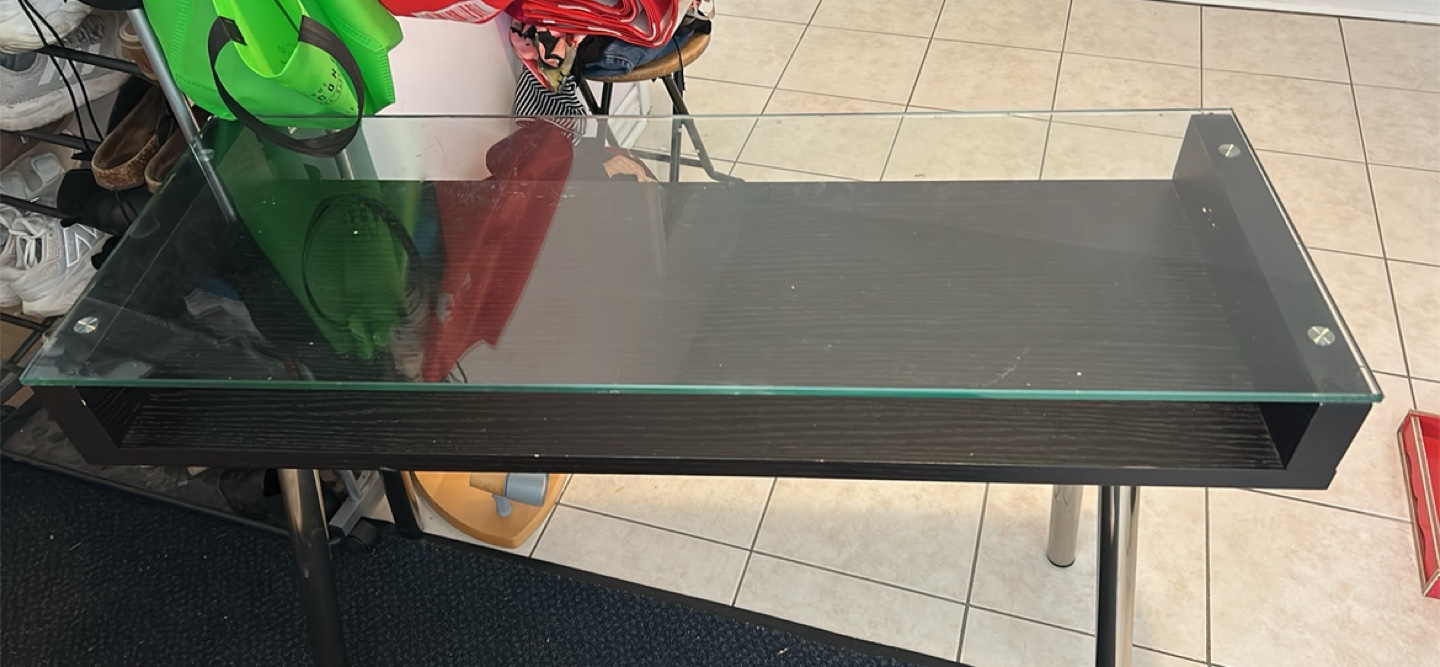 1 / 21 / 2Buy & SellModern Glass Top Desk with Metal LegsModern Glass Top Desk with Metal Legs$35Sleek black desk. Glass top. Metal legs. Great for small spaces. Some minor wear.ConditionGoodWHERE TO MEETCheck LocationView MapSELLERverifiedvivAgincourt N29224 reviews1 chatsΒ·0 favoritesΒ·50 viewsSEND CHAT TO SELLERHi viv! Iβm interested in your listing.Hi viv! Iβm interested in your listing.Get the Karrot app to chatSign In to chat