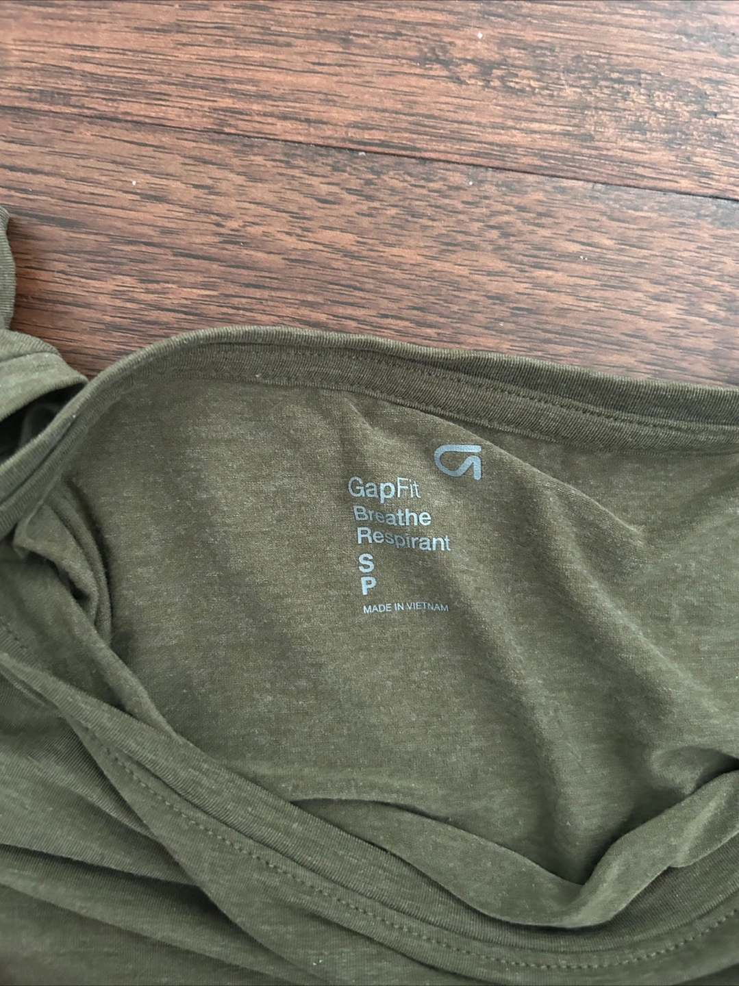 Two GapFit Breathe Respriant t-shirts. One grey cropped, size medium. One olive green, with wide neck and open sides, size small. Soft, breathable fabric. Great condition.
