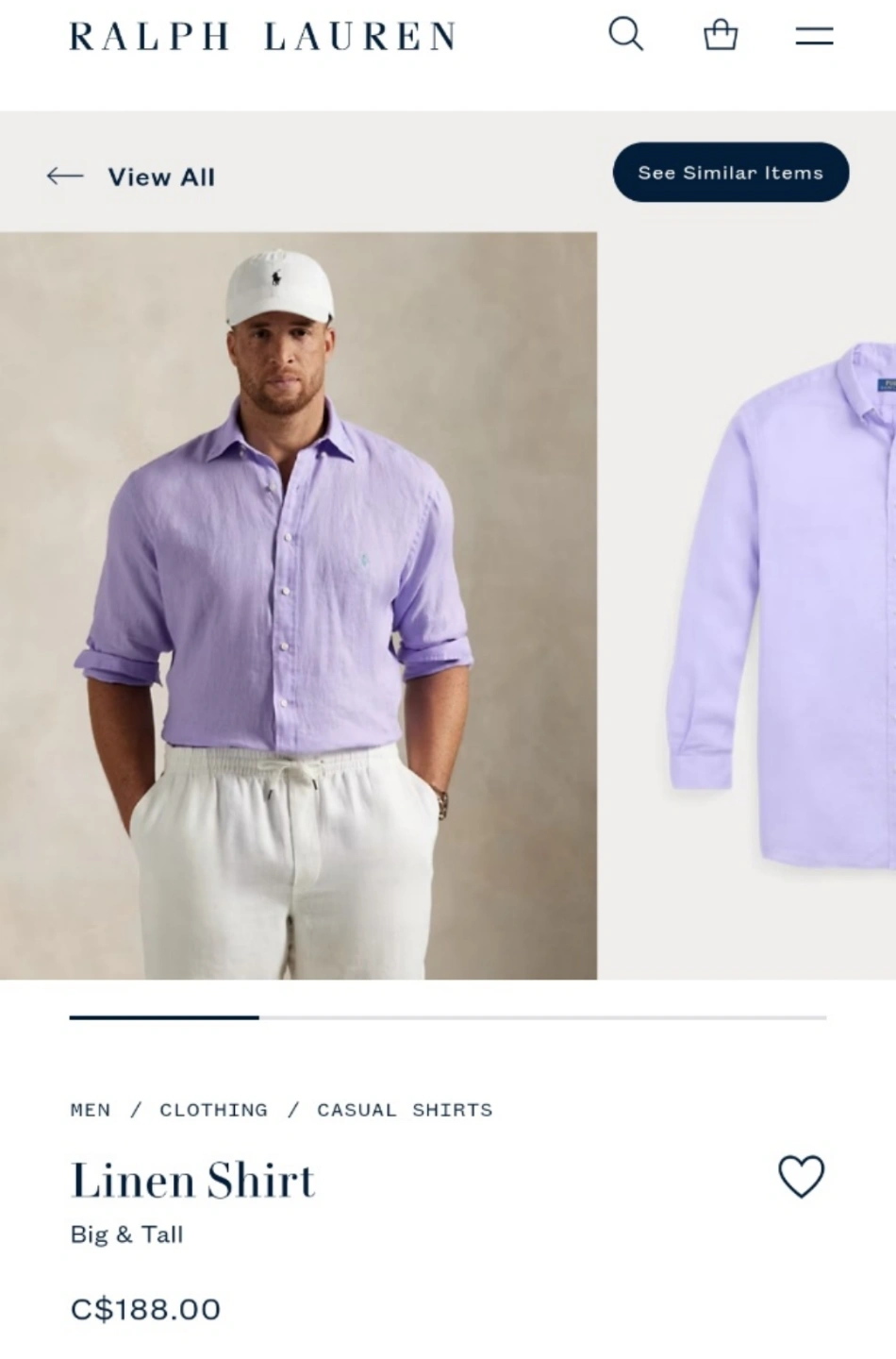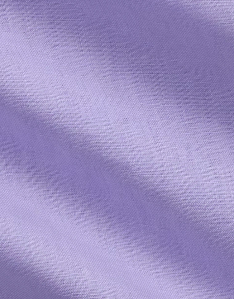 Men's long-sleeve linen shirt. Light purple colour. Button-down closure. Embroidered logo.