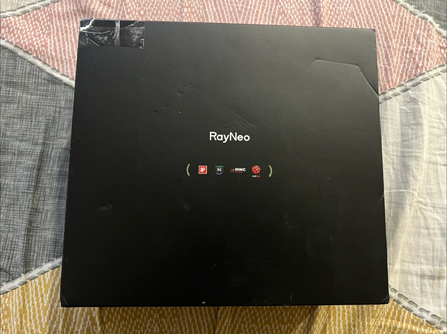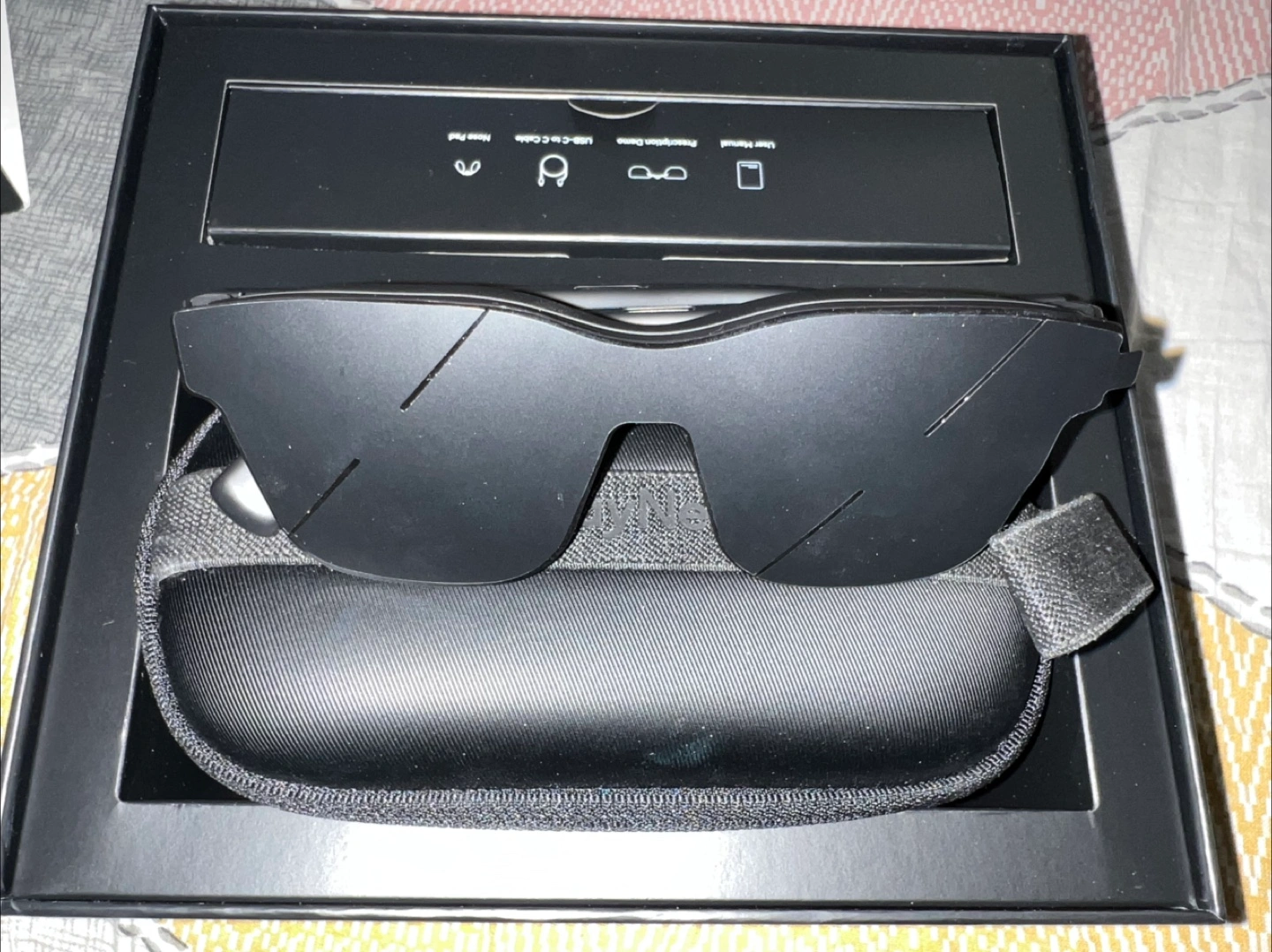 Brand new RayNeo X smart glasses. Sleek, black frame. Includes charging case and all original packaging. Bone conduction audio technology. Excellent condition.