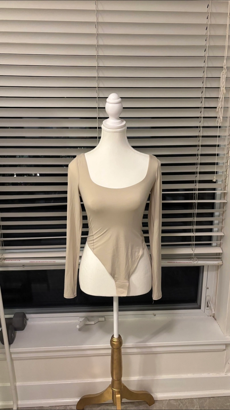 Fitted, long-sleeved bodysuit. Square neckline. High-leg cut. Neutral beige colour. Pickup Yonge and Sheppard Check out my other listings!