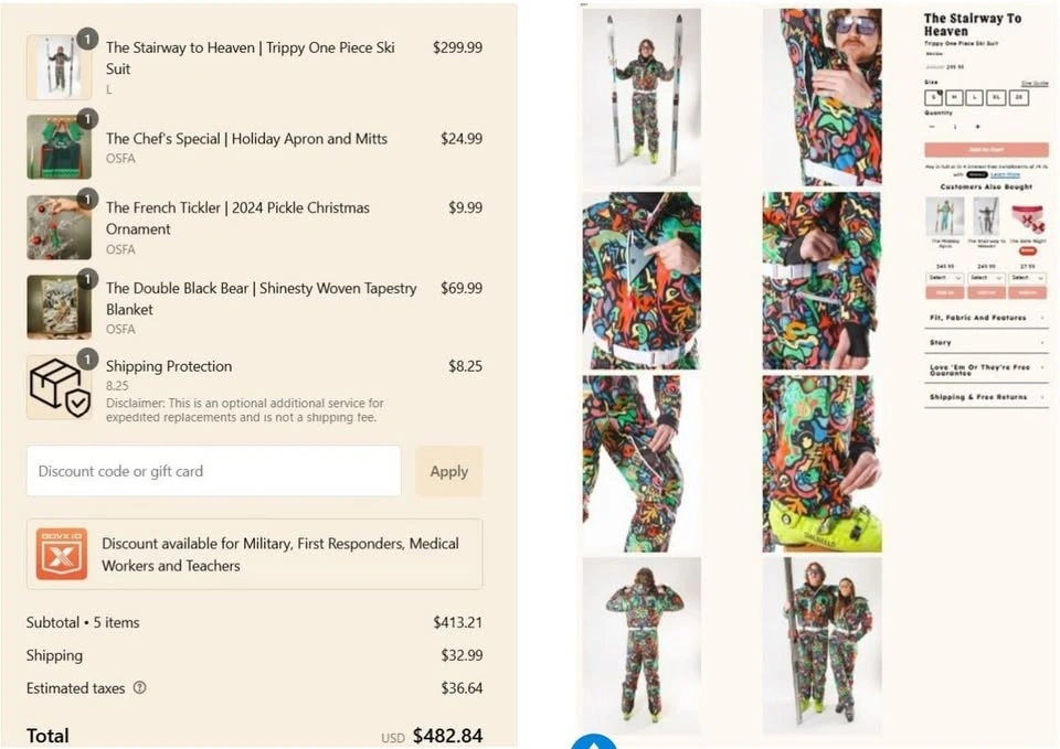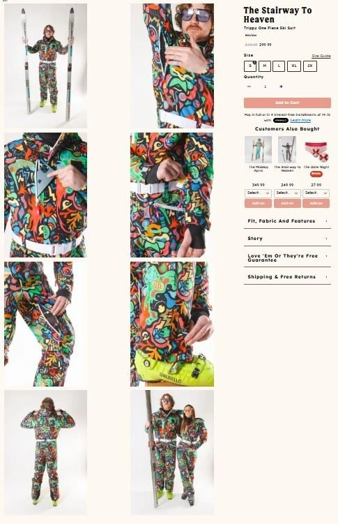Brand new, never worn 2024/2025 Shinesty Ski suit by OOSC, "Stairway to Heaven" in size large. See sizing chart. Includes a skiing blanket, apron, and ornament. Everything is still in its original, unopened packaging. This was a Christmas gift, but I accidentally purchased the wrong size and missed the return window. The entire package currently retails for $482.84, and I paid over $540 for it (see image). Feel free to message me if you have any questions.