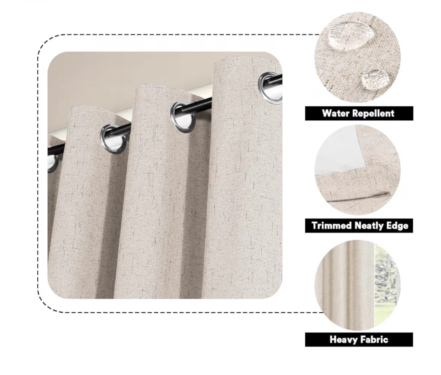 100% Blackout Natural Curtains - 52" x 84" - Thermal Insulated