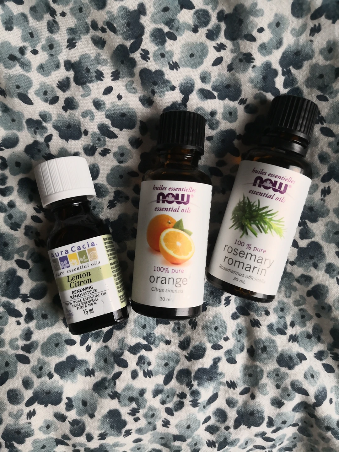 Rosemary essential oil, orange essential oil and lemon essential oil