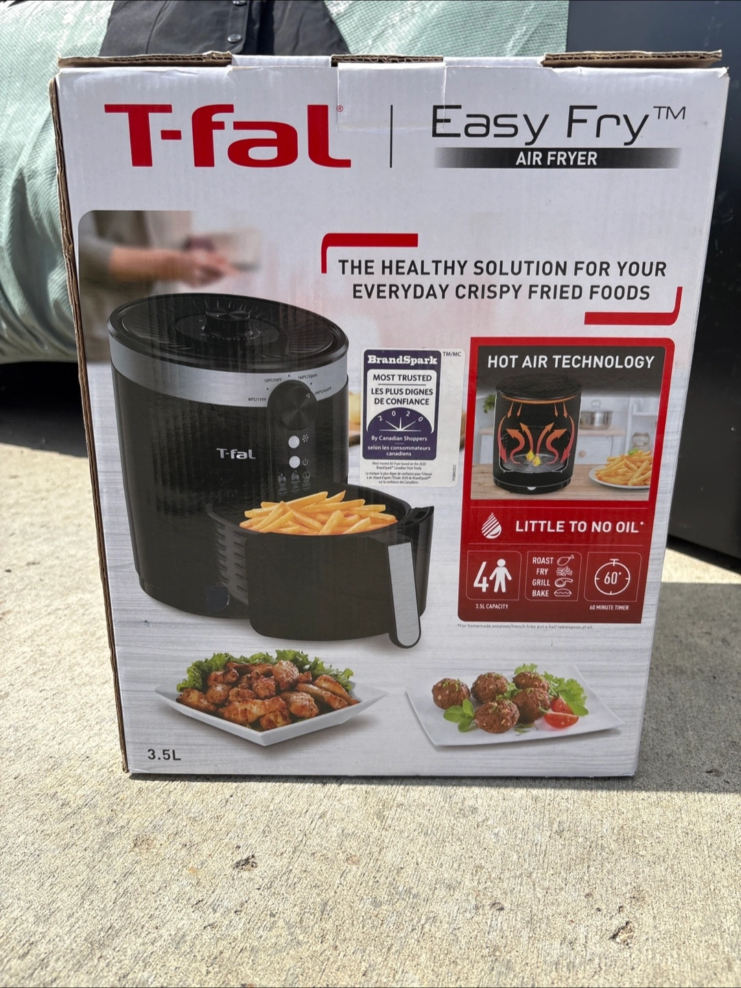 New, in box. 3.5L capacity. Hot air technology. Little to no oil. Roasts, fries, grills, and bakes. 60-minute timer.