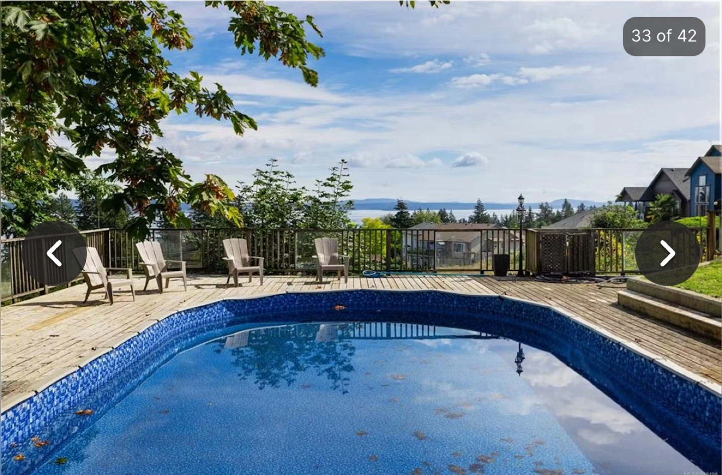 Beautiful Ladysmith home. Main level offers open concept kitchen, dining and cozy family room with natural gas fireplace. Enjoy the views from inside or walk out to the sprawling deck that leads down to flat usable rear yard with above ground pool. Includes primary bedroom, 2 more bedrooms, and ensuite. You'll pass a laundry room and a powder room on the way downstairs to the big rec room with walk in closet and water tank. The lowest floor provides walk out access the rear yard and storage room. All data and measurement are approximate and should be verified by a buyer if deemed important.