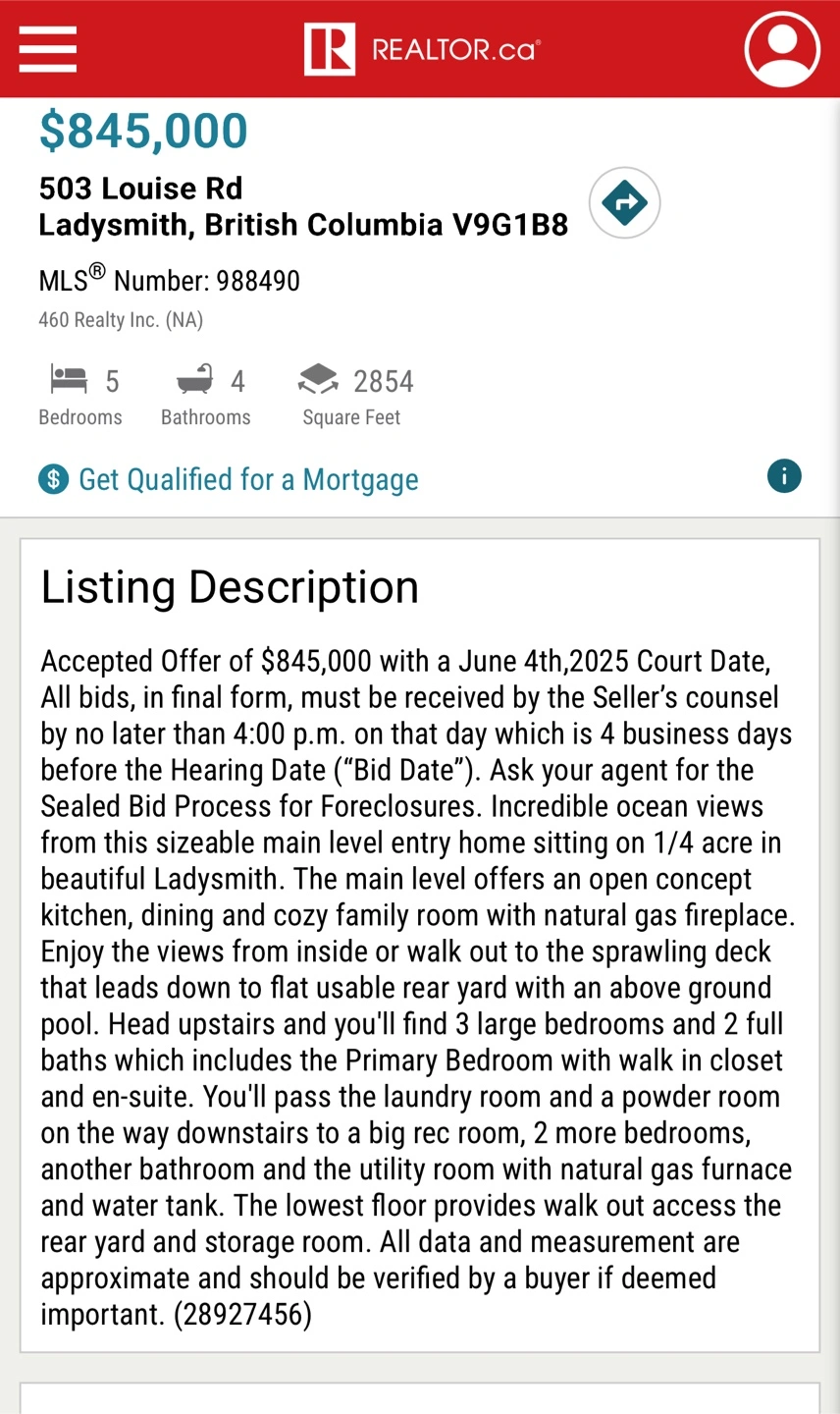 Beautiful Ladysmith home. Main level offers open concept kitchen, dining and cozy family room with natural gas fireplace. Enjoy the views from inside or walk out to the sprawling deck that leads down to flat usable rear yard with above ground pool. Includes primary bedroom, 2 more bedrooms, and ensuite. You'll pass a laundry room and a powder room on the way downstairs to the big rec room with walk in closet and water tank. The lowest floor provides walk out access the rear yard and storage room. All data and measurement are approximate and should be verified by a buyer if deemed important.