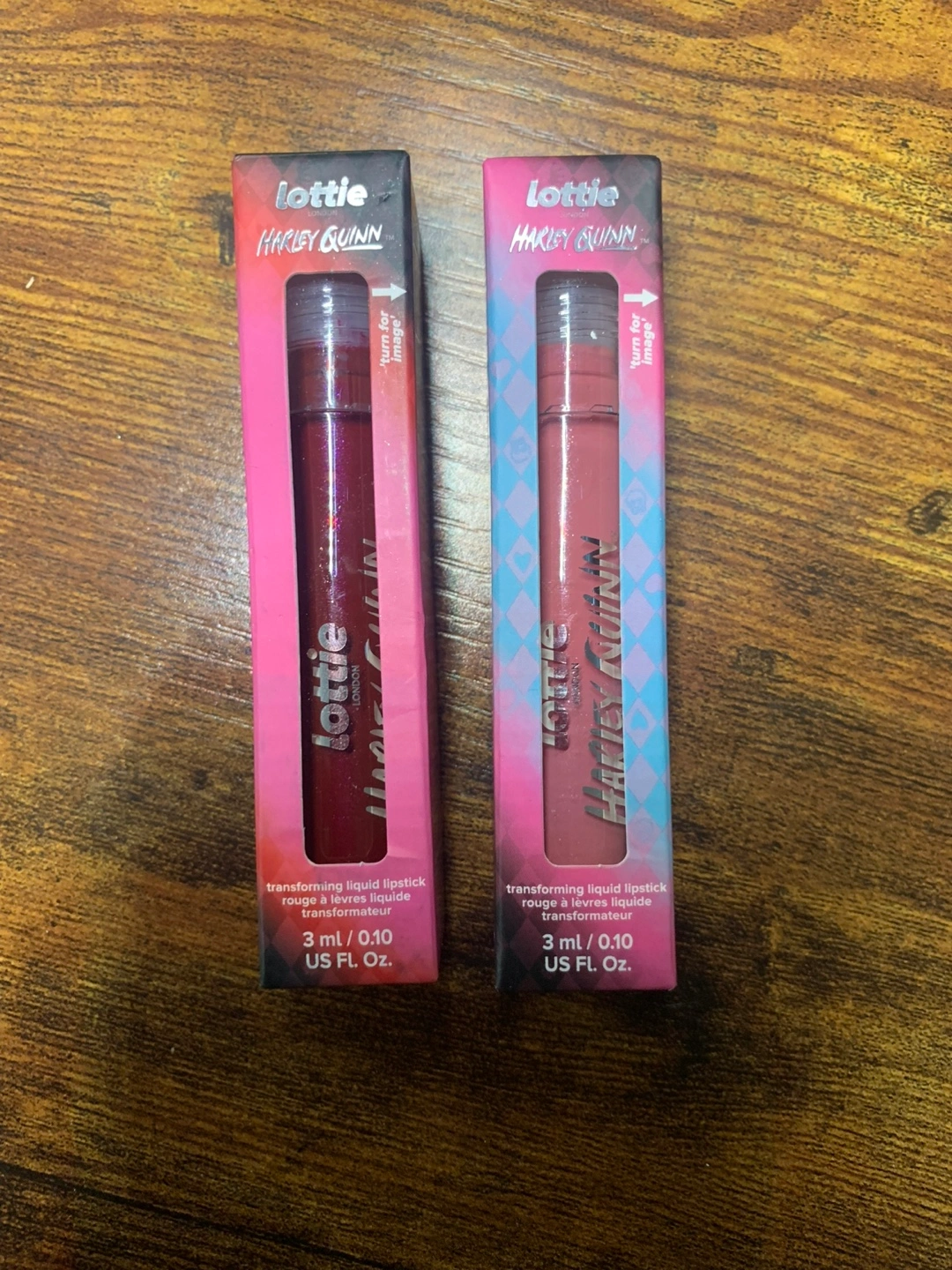 Two Lottie London Harley Quinn transforming liquid lipsticks. New and unopened. Each tube contains 3ml/0.10 US fl. oz.