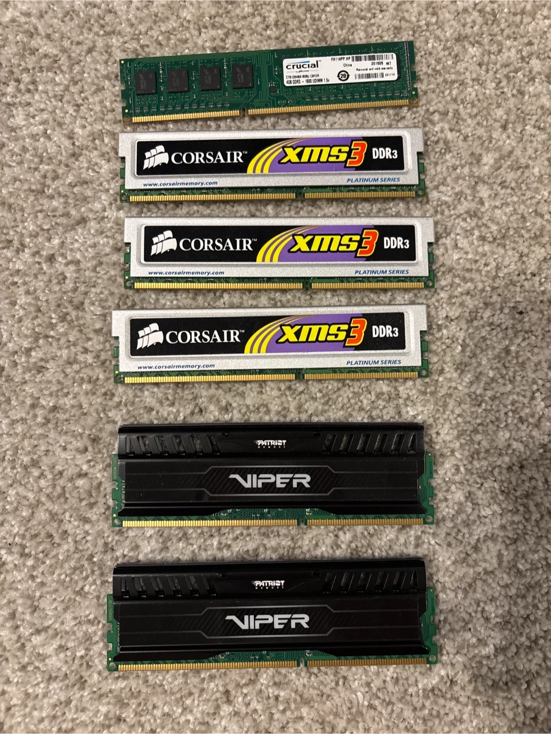 • 3x Corsair XMS3 DDR3 sticks → $30 total