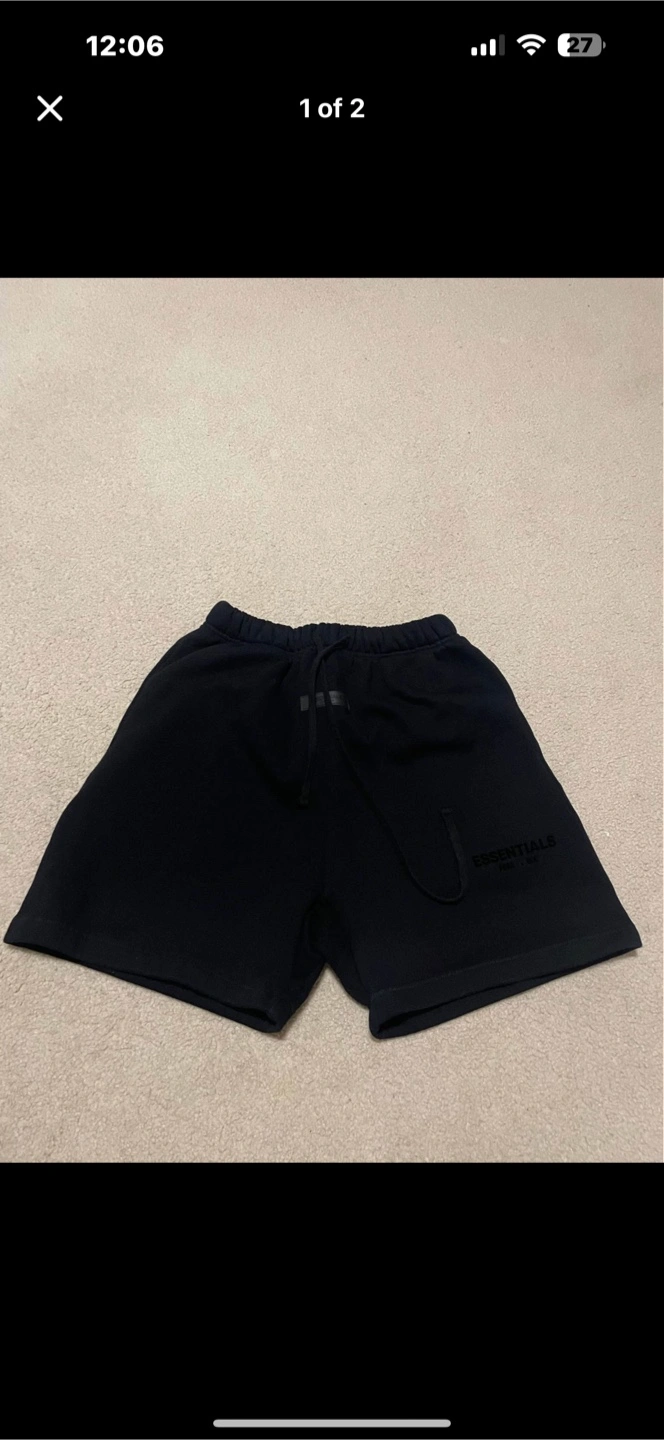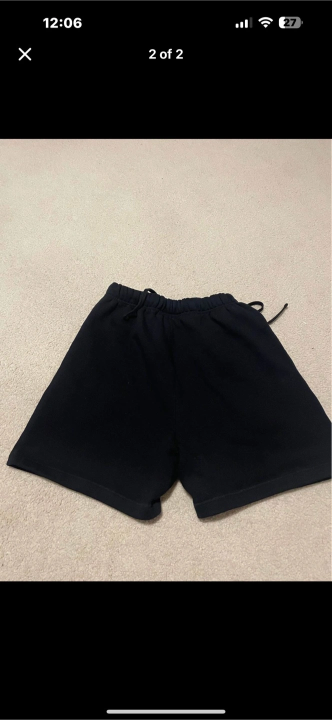 Black cotton shorts. Drawstring waist. Minimalist branding. Excellent condition.