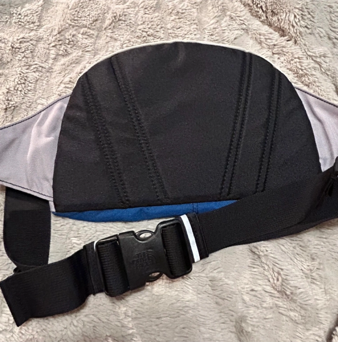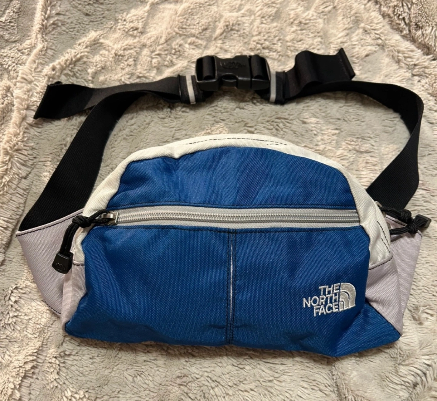 Vintage The North Face hip pack. Blue and grey colour scheme. Adjustable waist strap. Small zippered pocket. Great for everyday use or travel.