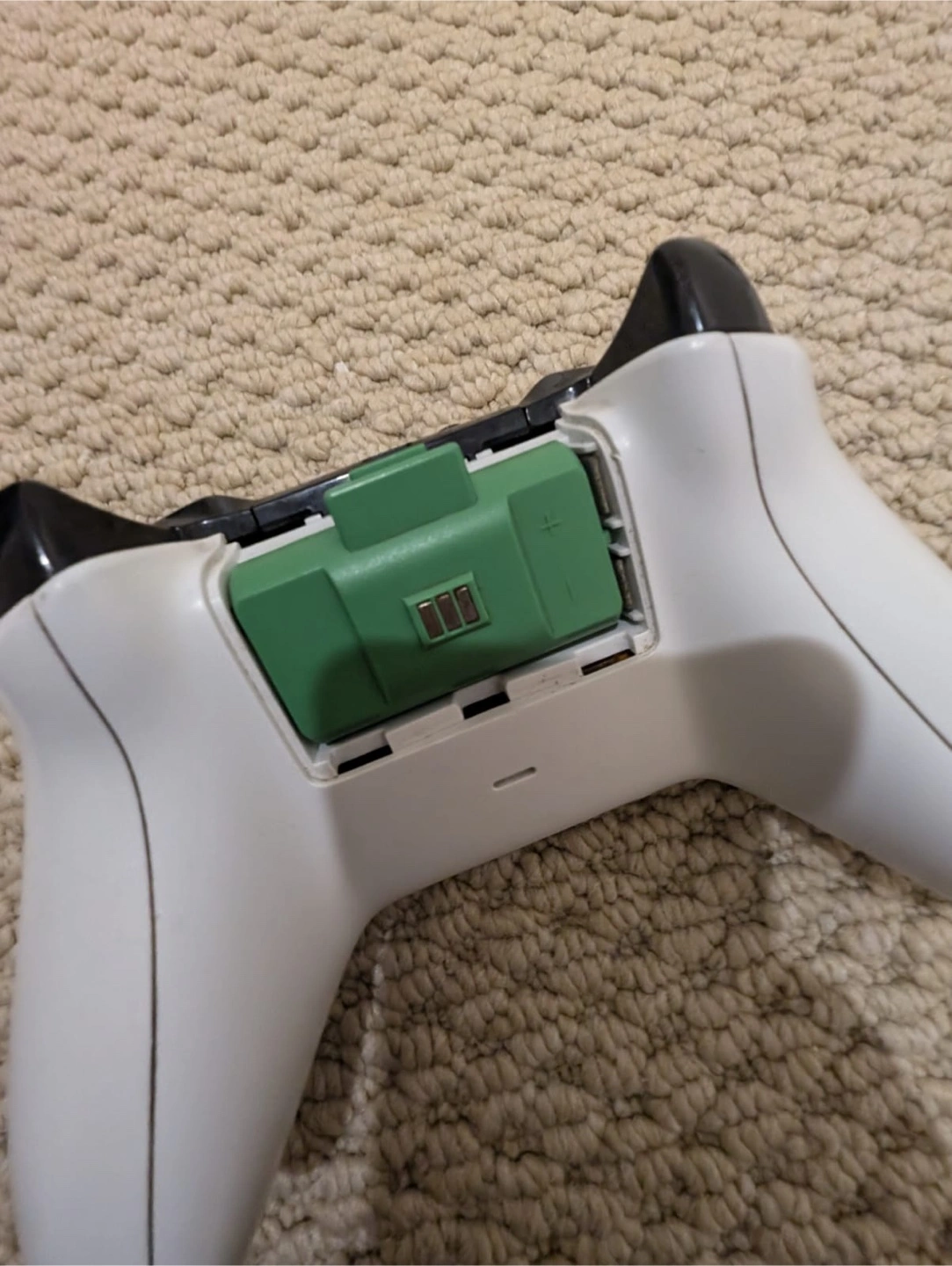 Black Xbox One console with 1 TB Storage. Includes external power supply, one white controller with accompanying 2 battery packs. 2 games: Call of Duty: Black Ops 2 and Call of Duty: Cold war. Pre-owned.