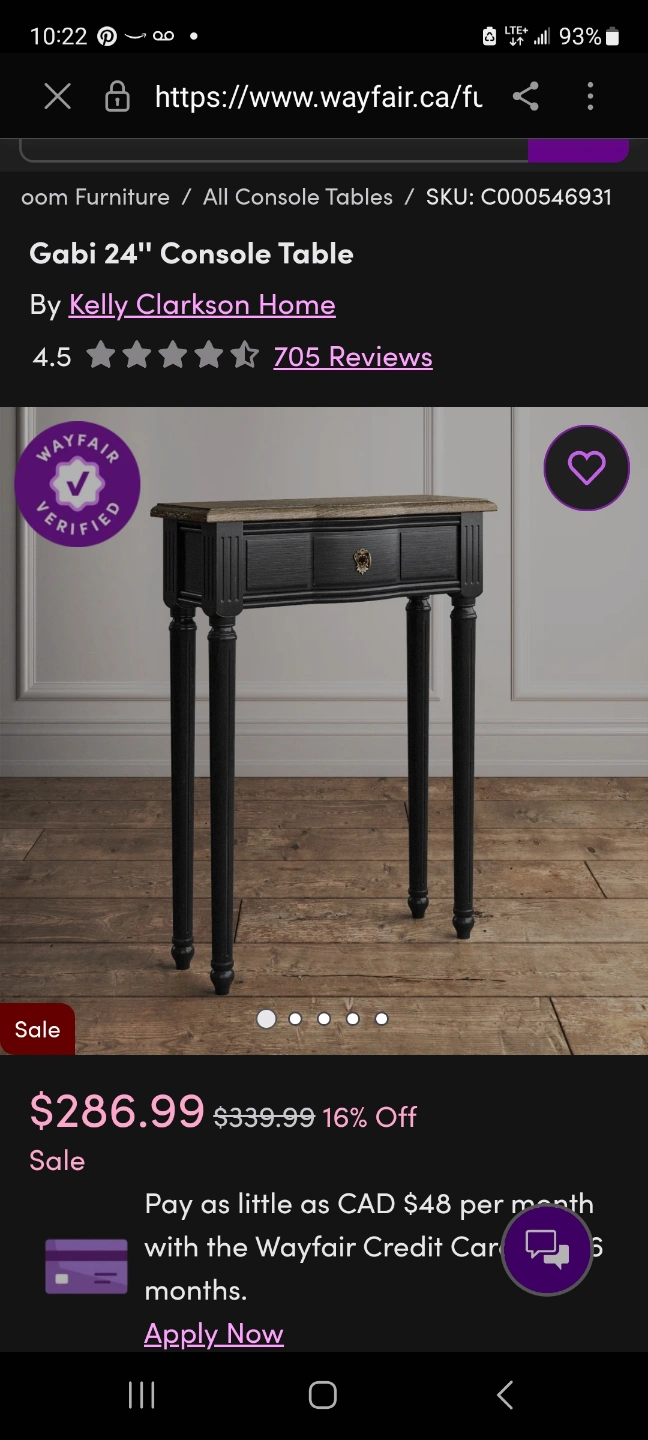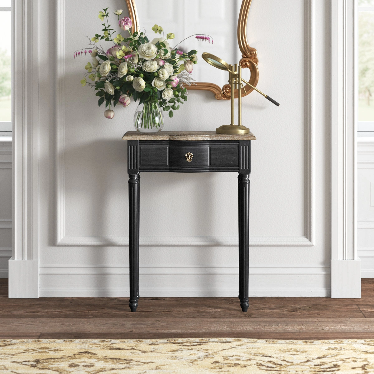1000+About This Product Short on square footage? This console table is a great pick for smaller spaces. Made from solid and engineered wood with a rustic finish, it features four tall, fluted legs and a curved front that complements aesthetics from traditional to French country. The single drawer offers spare storage for keys and mail, while the decorative knob pull showcases medallion details. This table has a compact footprint that fits just right in your foyer or even your bathroom. Pair with a mirror and coat rack, and you'll have your favourite spot in the house for making sure you're ready to go. Hand-curated by Kelly Clarkson. Features Lightweight yet durable wood construction Other Dimensions Overall 31.5'' H X 24'' W X 10'' D Drawer Interior 4'' H X 11'' W Clearance - Floor to Bottom 24'' H Overall Product Weight 17.6 lb. **** Cash Only **** **** Pickup Only **** **** No E-transfers **** **** Serious Inquiries Only ****