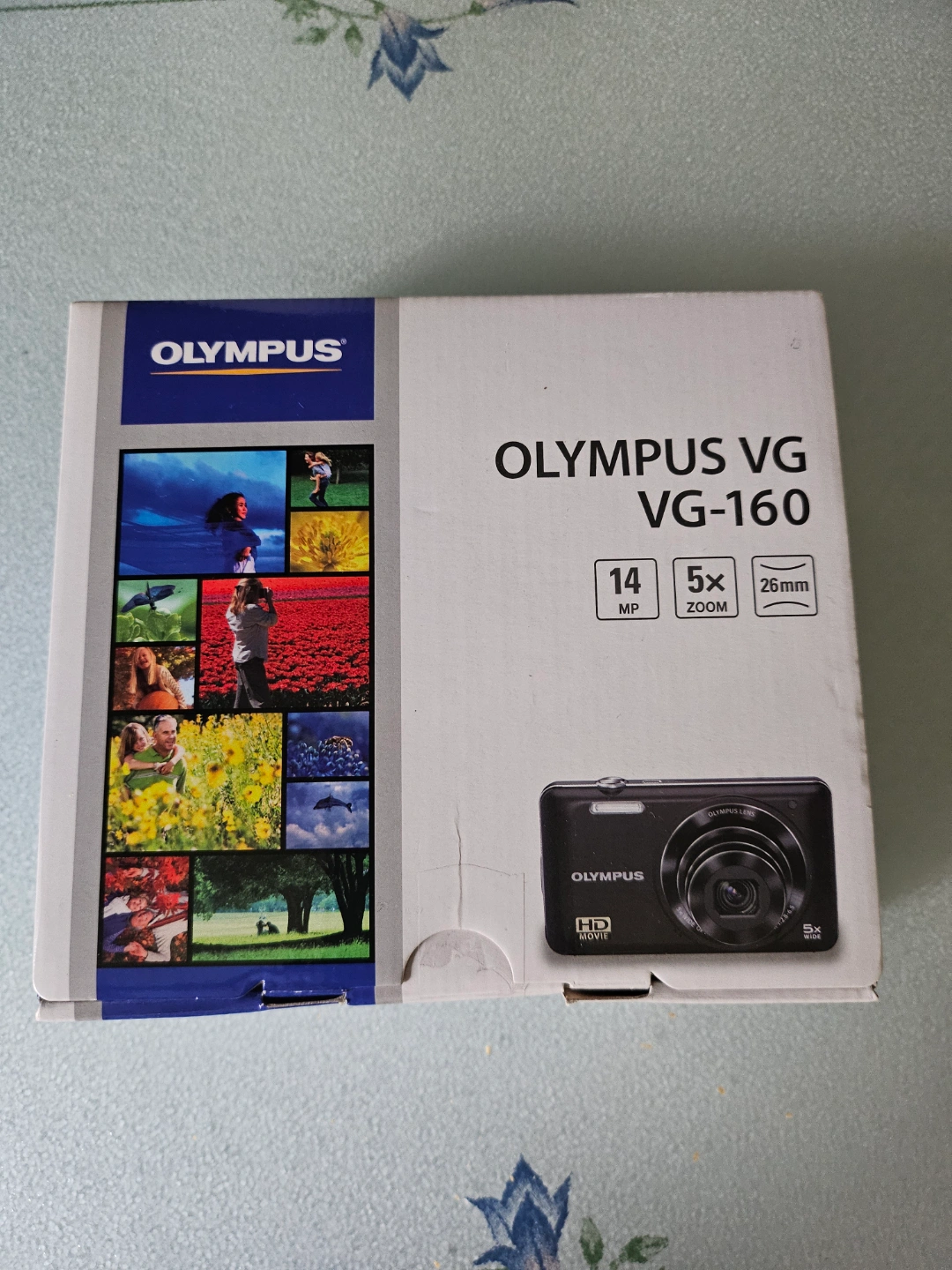 Olympus VG-160 digital camera. 14MP. 5x zoom. 26mm lens. 720p HD video. Compact and easy to use. Includes original box.