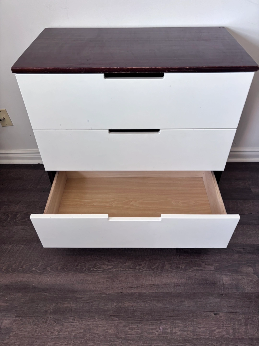 Buy & SellThree-Drawer Dresser - White and Dark BrownThree-Drawer Dresser - White and Dark Brown$60Three-drawer dresser. White body with dark brown top. Minimalist design. Shows minor wear.ConditionGoodDimensions33.5x33x19WHERE TO MEETWychwoodView MapSELLERverifiedMannyWychwood44736 reviews14 chats·6 favorites·548 viewsSEND CHAT TO SELLERHi Manny! I’m interested in your listing.Hi Manny! I’m interested in your listing.Get the Karrot app to chatSign In to chat