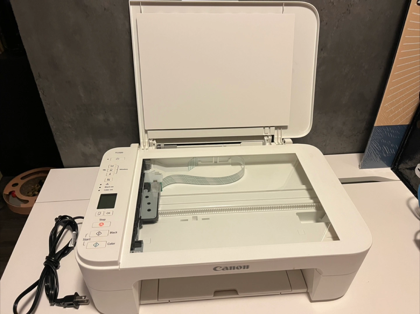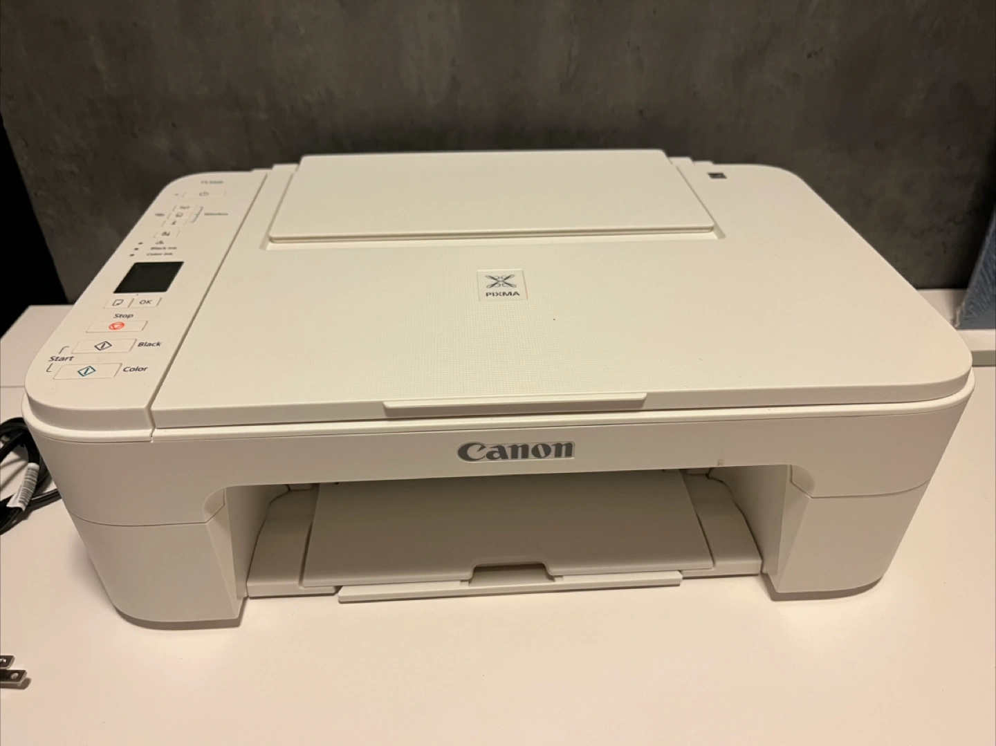 Canon PIXMA TS3300 Wireless Colour Inkjet Printer. Compact printer, scans and copies. Wireless capabilities. White. Includes power cord.