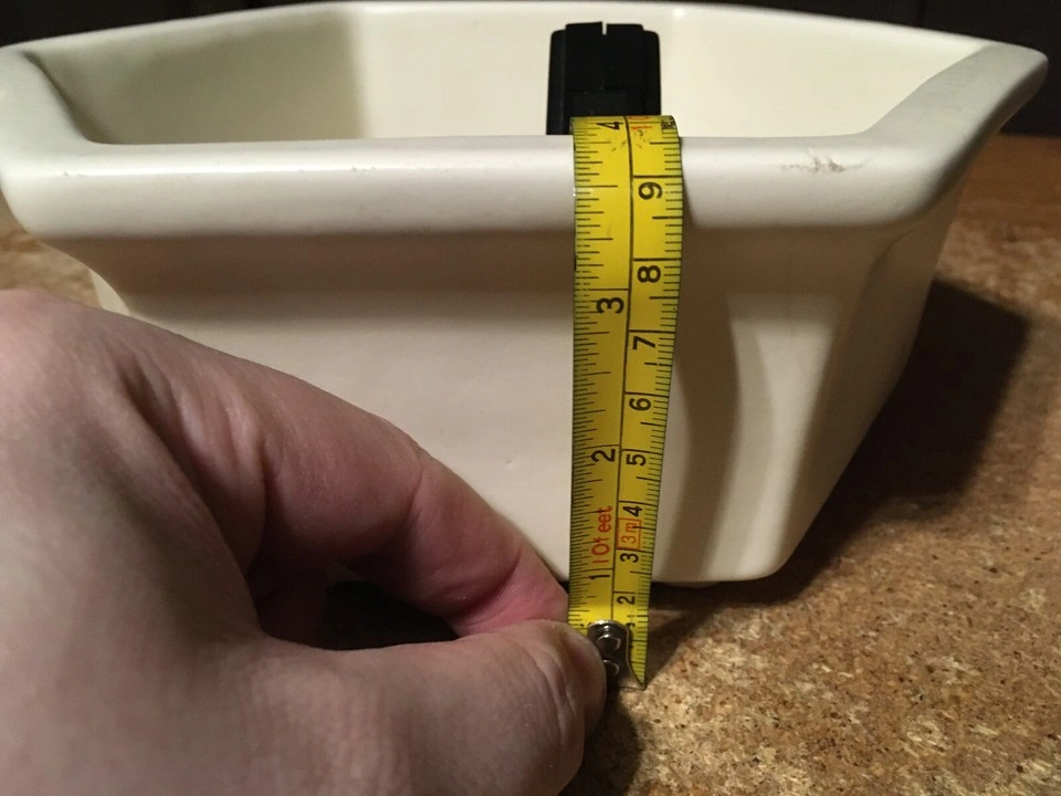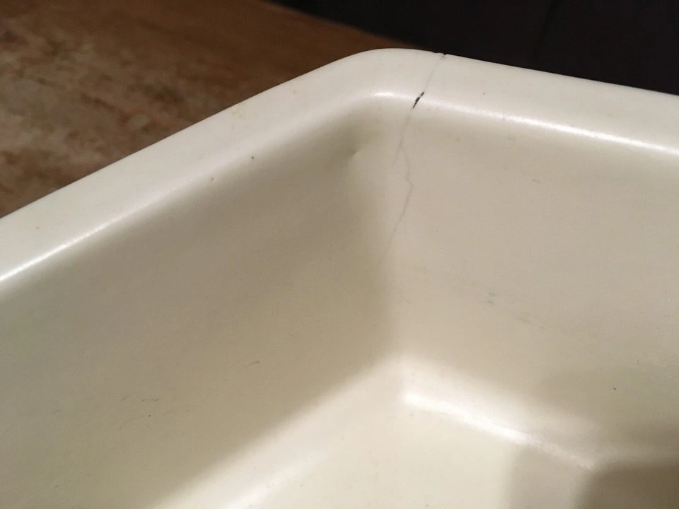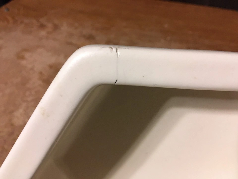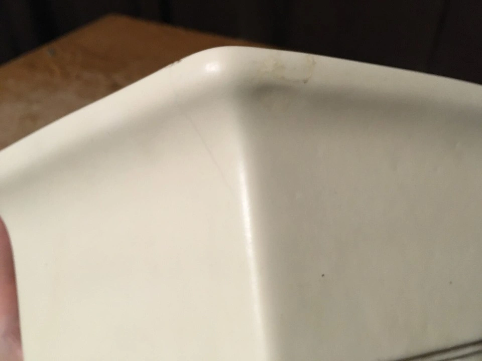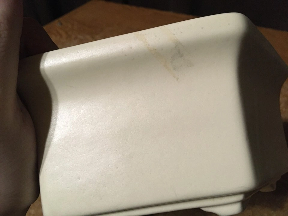Unique hexagonal bowl. Cream colored ceramic. Shows some minor discoloration. Made in the USA. has some scuffs marks and a couple little chips shown in like pictures six I'm at great with colors but it's like a white cream ish pick up at house