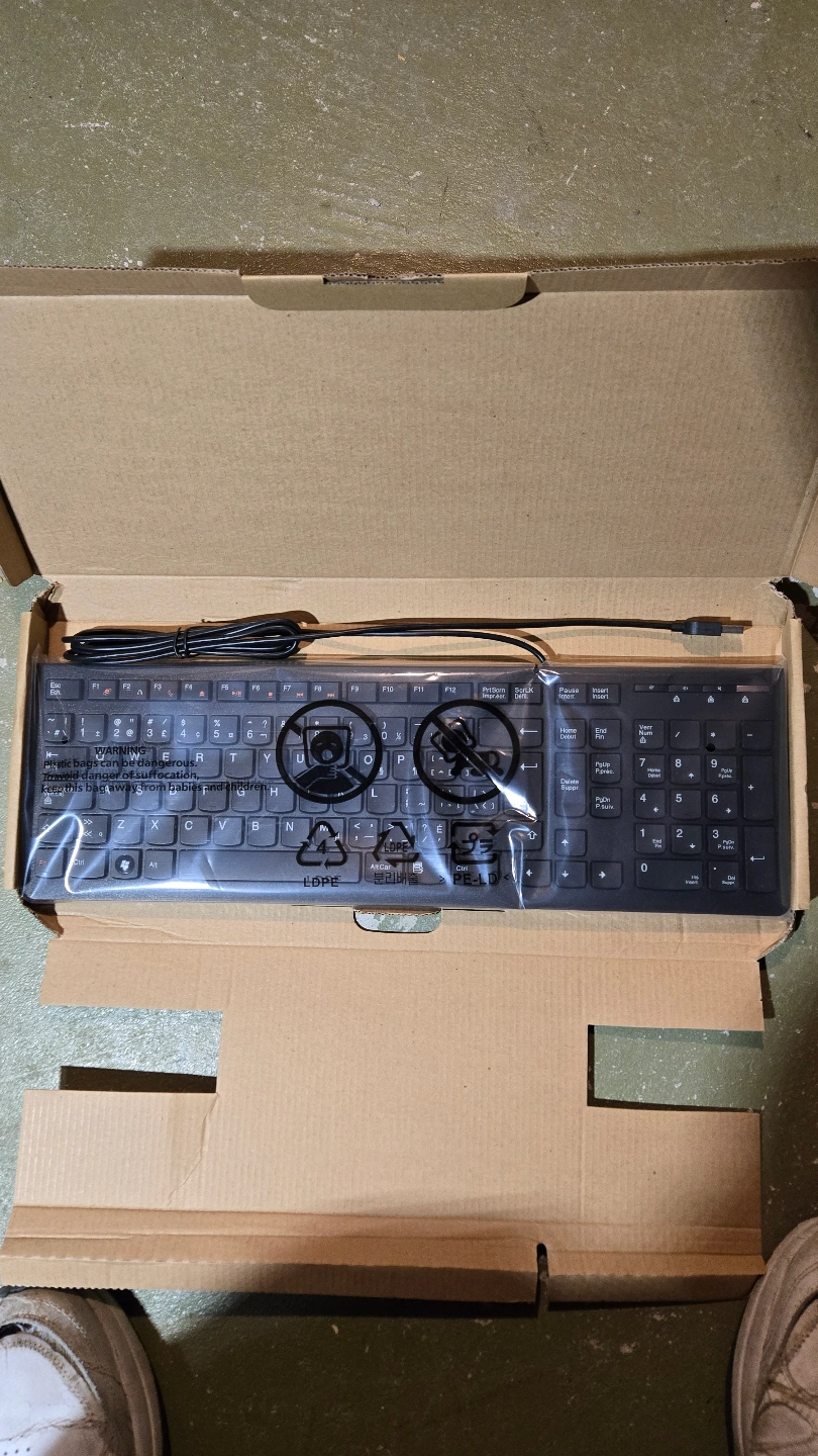 New Lenovo wired keyboard. Model LXH-EKB-10YA. Comes in original packaging. Includes keyboard and cable. USB connection.