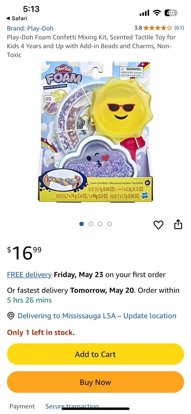 Scented tactile toy for kids aged 4+. Includes foam confetti, beads, and charms. Fun and colourful.