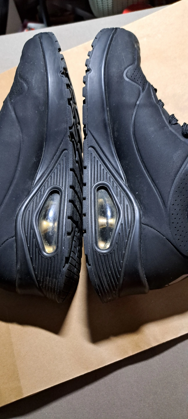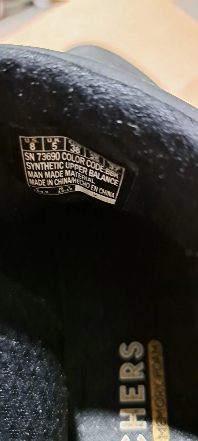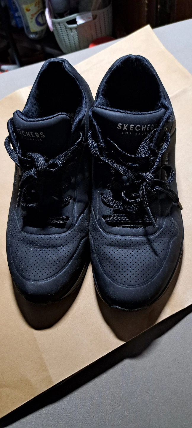 Pair of black Skechers sneakers. Women's Lace-up closure. Good condition. Air-cushioned soles. Stylish and comfortable. says size 8 but unfortunately doesn't fit me. I'd say it's truly size 7 with socks Cash only pick up only