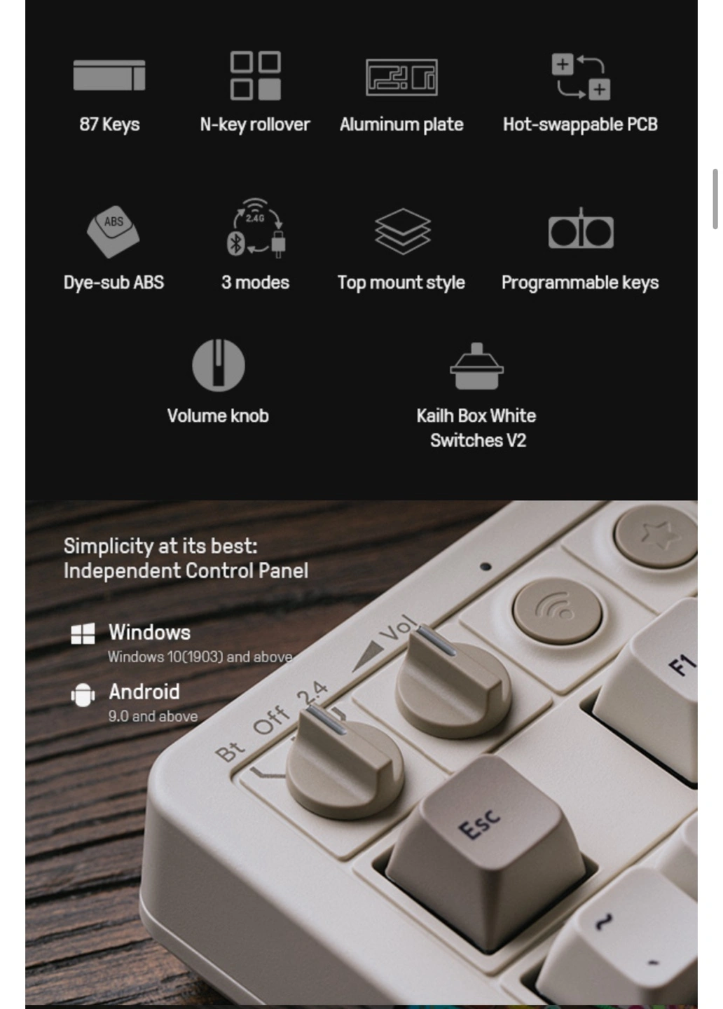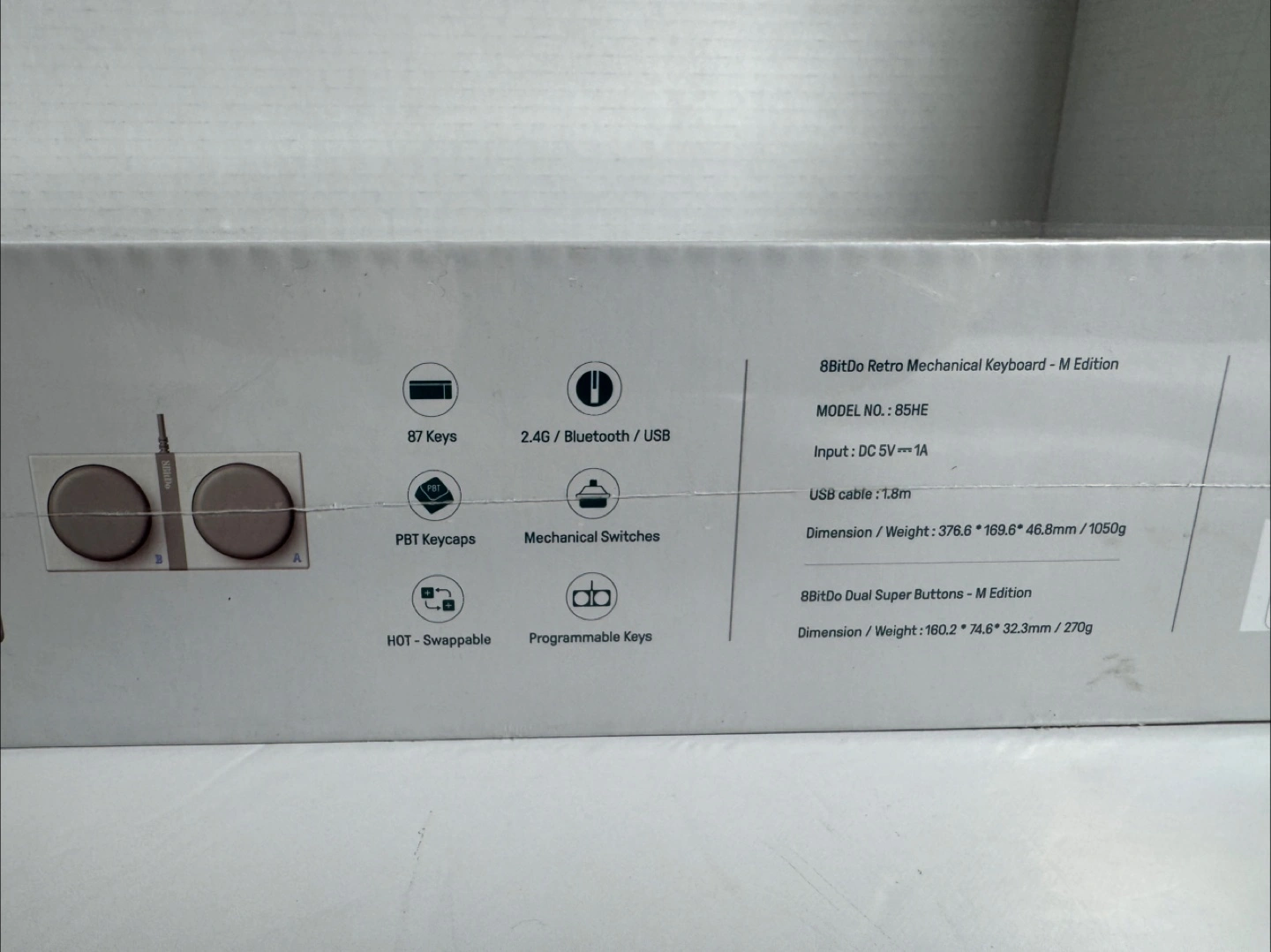 8BitDo Retro Mechanical Keyboard, Bluetooth/2.4G/USB-C Hot Swappable Gaming Keyboard with 87 Keys, Dual Super Programmable Buttons for Windows and Android - M Edition