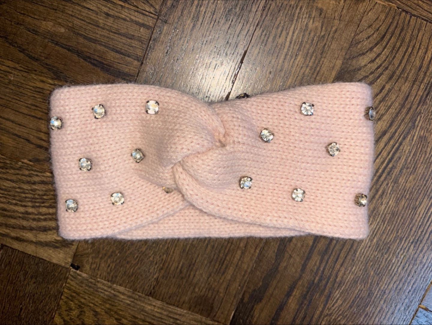 Pink knit headband. Features a twisted design and clear rhinestone embellishments. Soft and comfortable material. Small so probably would only fit a child