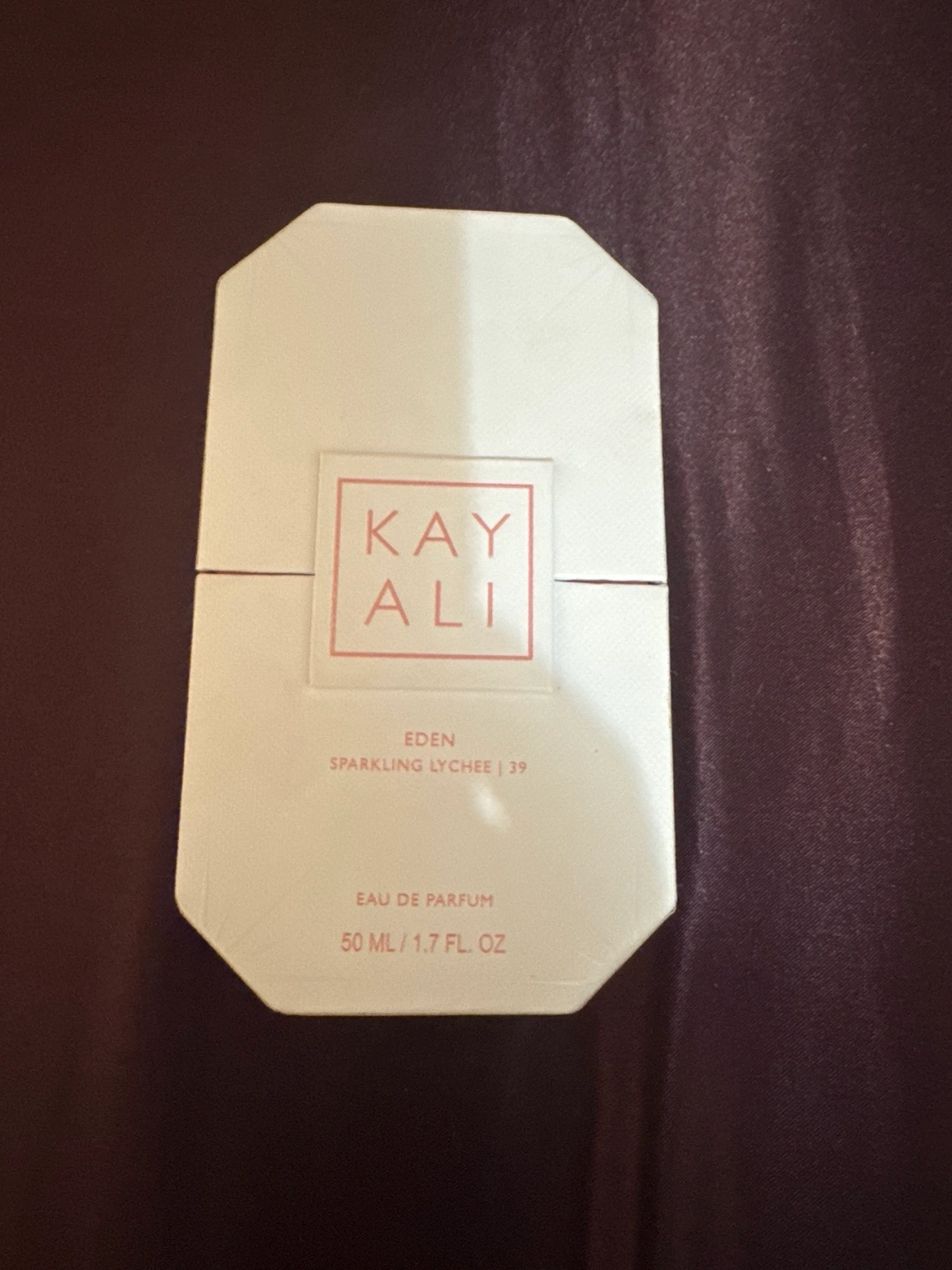 Lightly used Kayali Eden perfume. 50ml bottle. Floral and fruity scent. Sparkling Lychee prominent note. Box included.