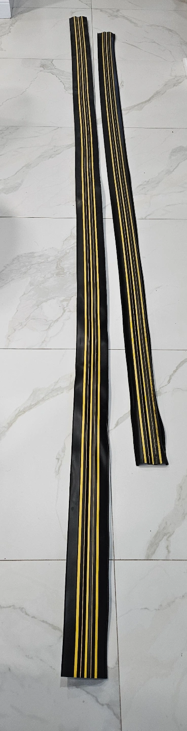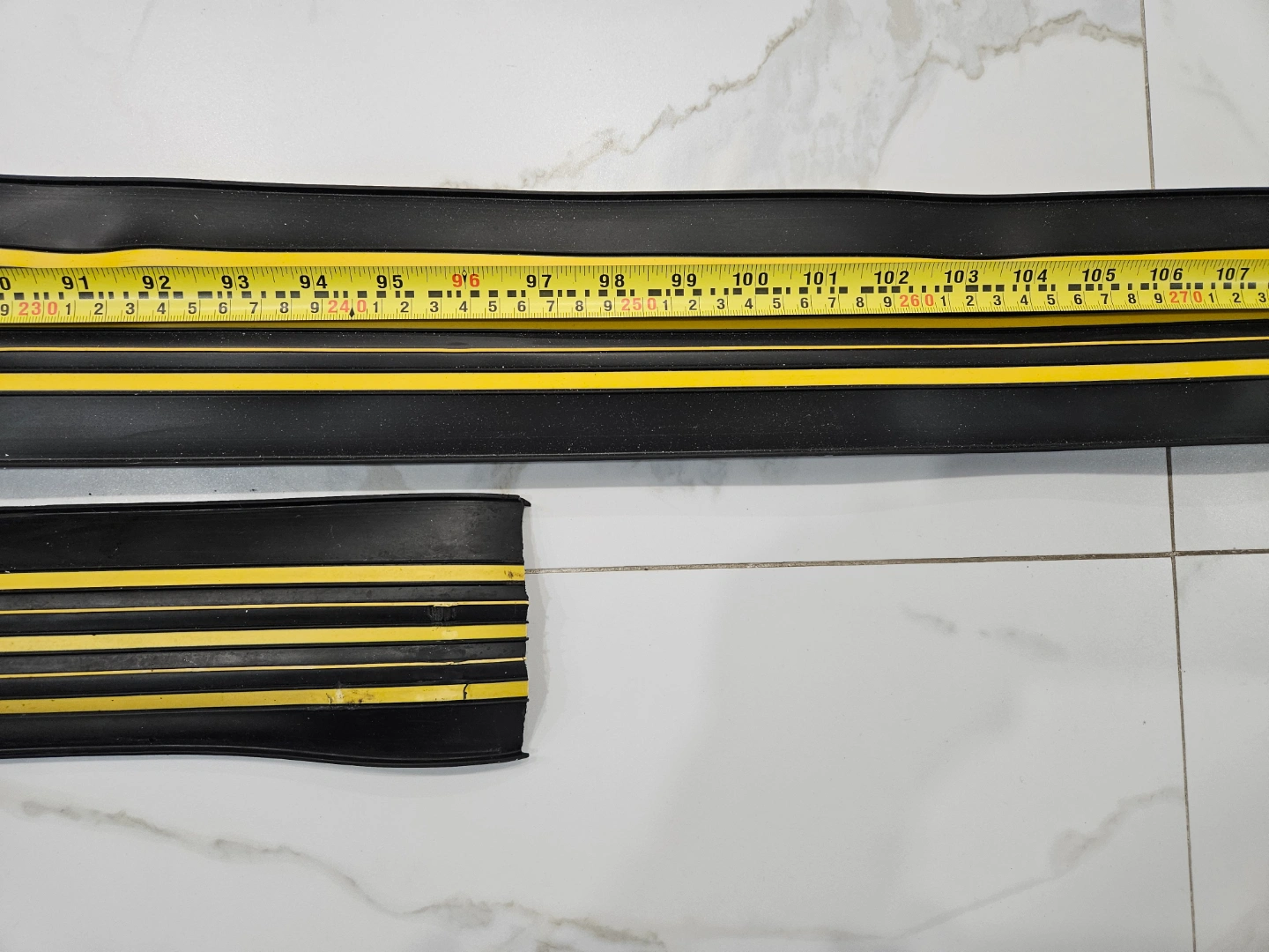 Selling Two pieces of black rubber garage door bottom seals. PLEASE CHECK PHOTO FOR LENGTH.