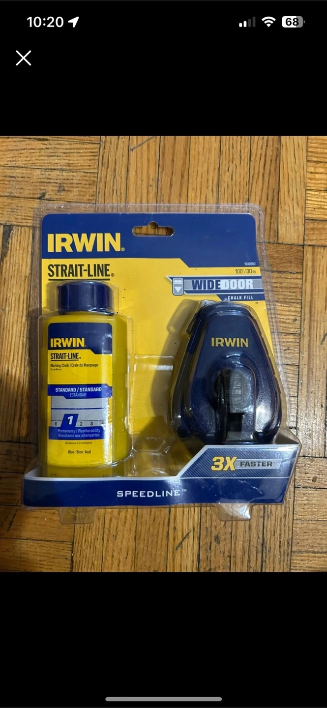 New IRWIN Strait-Line chalk line refill kit. Includes one bottle of blue marking chalk and a wide door chalk dispenser. 3X faster application. Speedline technology.