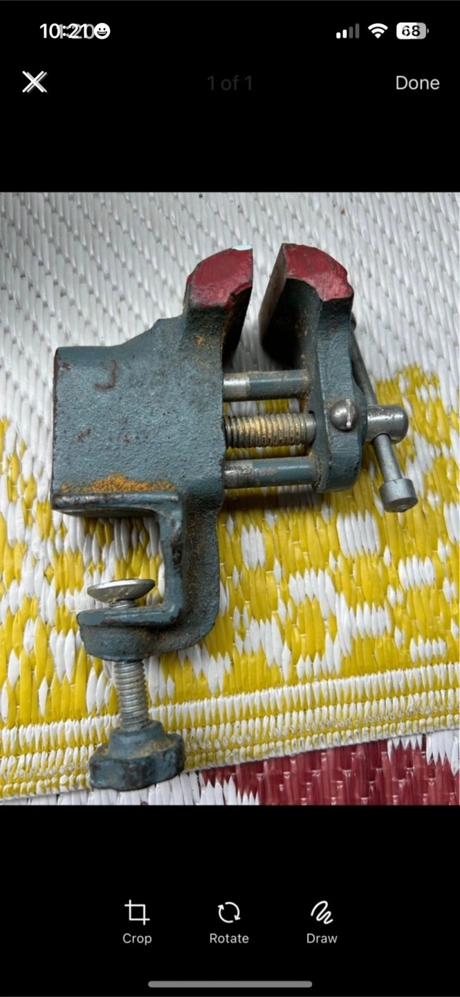Buy & SellVintage Mini ViseVintage Mini Vise$15Small metal vise. Shows some wear. Great for small projects.WHERE TO MEETCheck LocationView MapSELLERZahraaParkwoods15112 reviews2 chats·0 favorites·20 viewsSEND CHAT TO SELLERHi Zahraa! I’m interested in your listing.Hi Zahraa! I’m interested in your listing.Get the Karrot app to chatSign In to chat