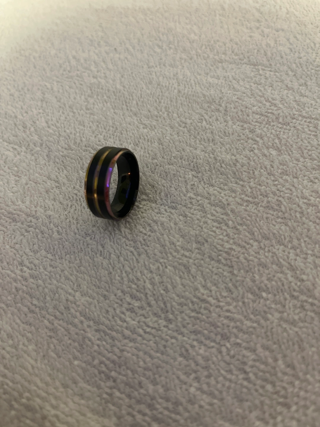 Stylish men's ring. Black tungsten carbide with gold inlay. Durable and comfortable. Great for everyday wear.