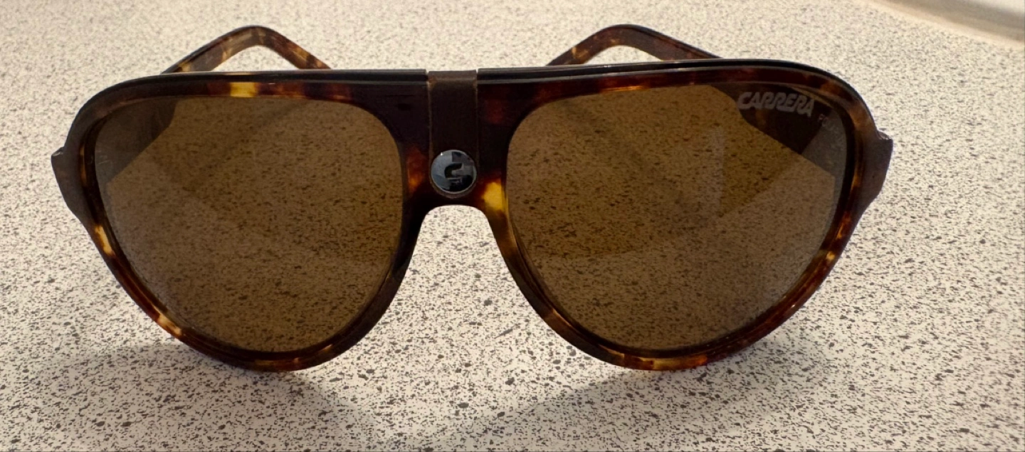Brown tortoise shell Carrera sunglasses. Classic aviator style. Brown lenses. Good condition.