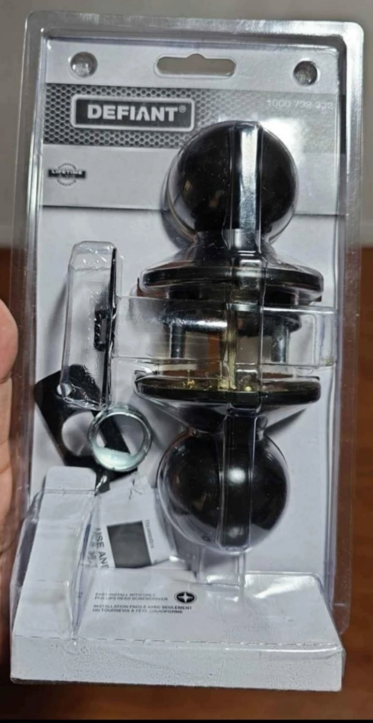 New in package. Black door knob. Part of the Defiant Saturn Collection. Includes all installation hardware. I have 5 or 6 door knobs.