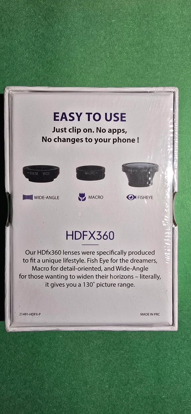 New in box. Three lenses: wide-angle, macro, and fisheye. Easy clip-on design. No apps required. Expands your mobile photography capabilities.