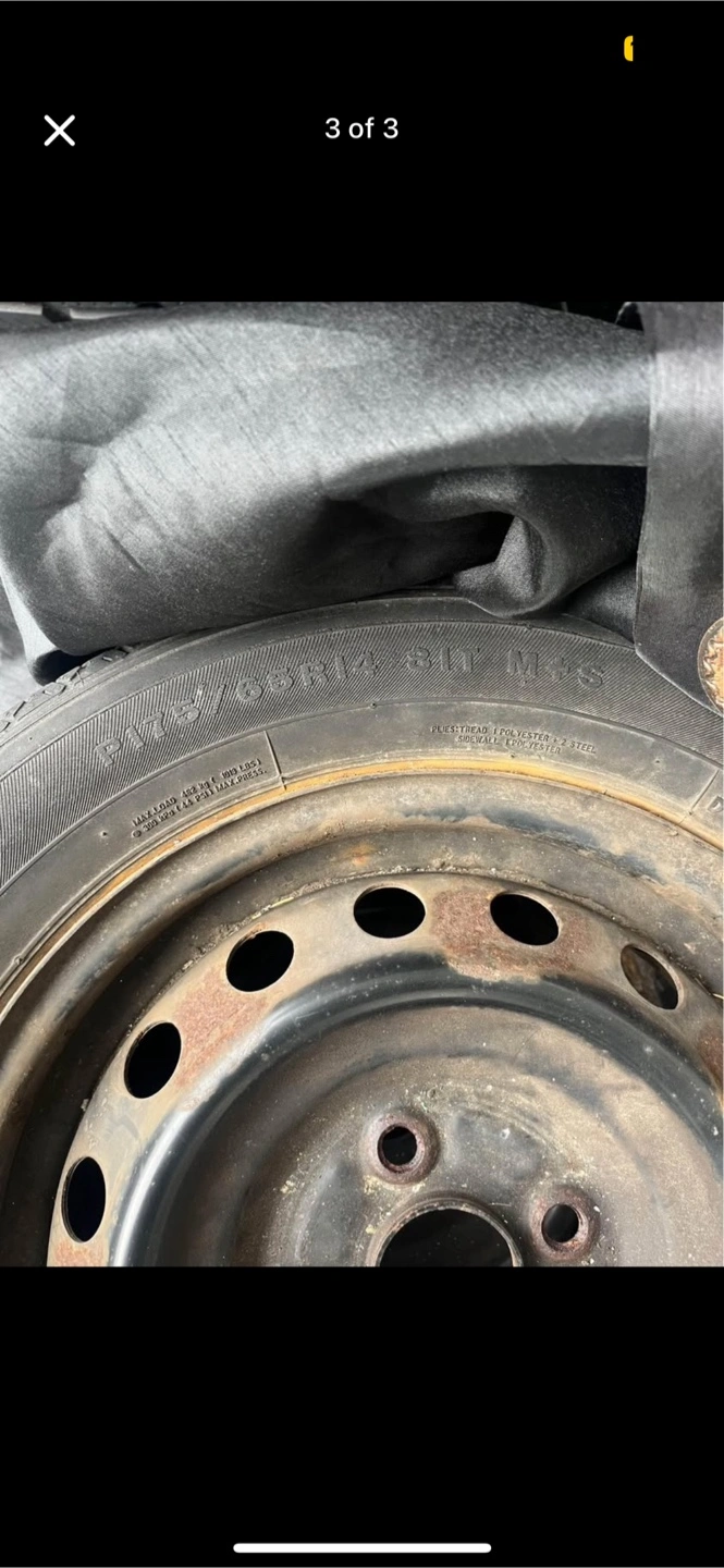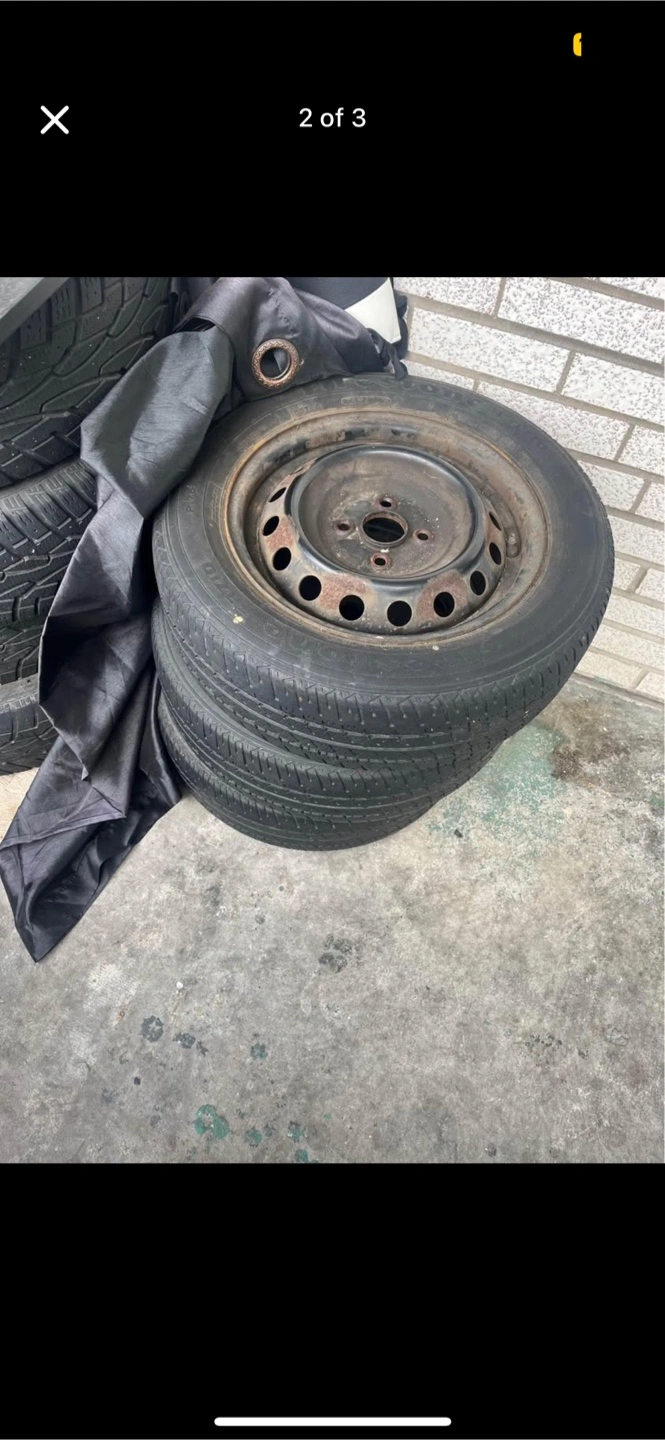 Set of 3 used Goodyear all seasons tires mounted on steel rims. Good tread depth. Minor surface rust on rims.