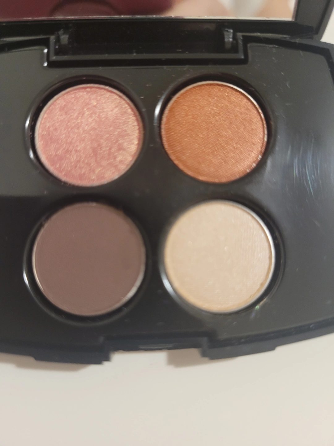Four-shade eyeshadow palette. Warm-toned colours. Compact black case with mirror. opened but never been used