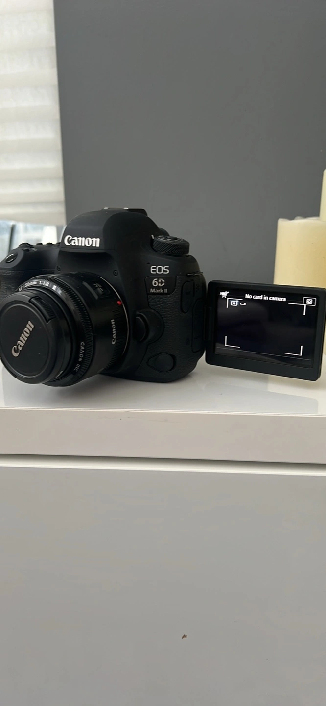 Excellent condition Canon EOS 6D Mark II DSLR camera. Includes a Canon 50mm lens. Camera body shows minimal wear. Great for photography enthusiasts.