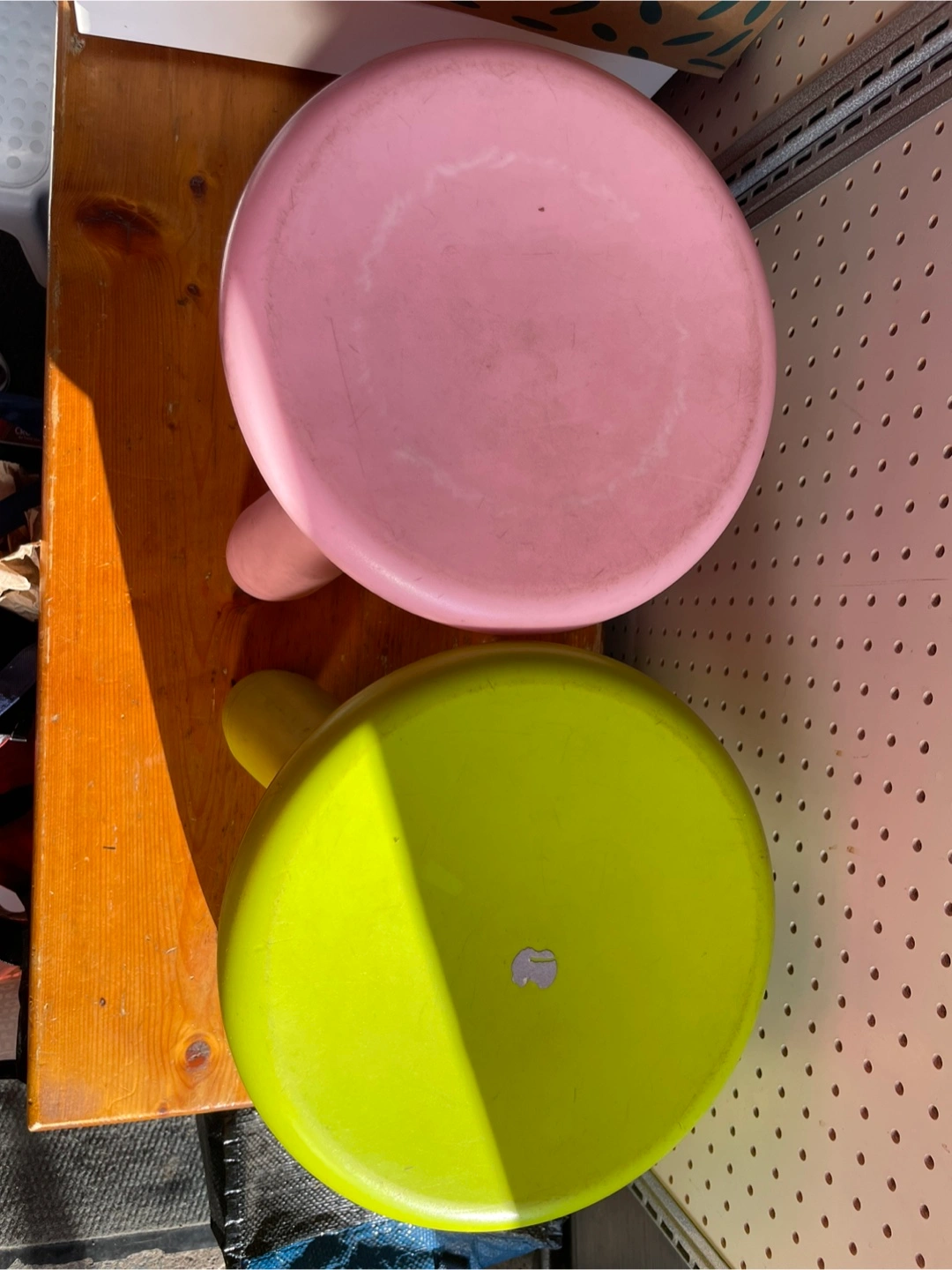 Buy & SellPair of Child's Stools - Pink & Green π₯Pair of Child's Stools - Pink & Green π₯FreeTwo plastic children's stools. Pink and lime green. Slight wear. Lightweight and easy to move.ConditionGoodWHERE TO MEETRONA+ Hamilton N.E.View MapSELLERBrandyTalbot423 reviews0 chatsΒ·1 favoritesΒ·23 views